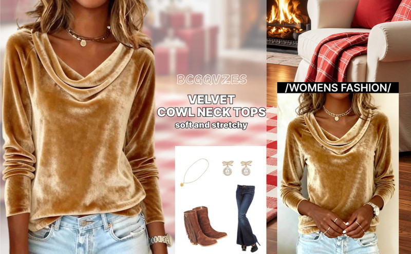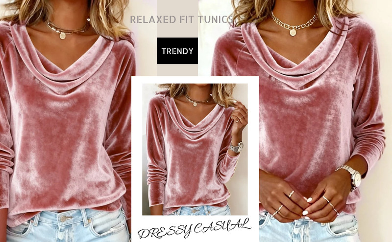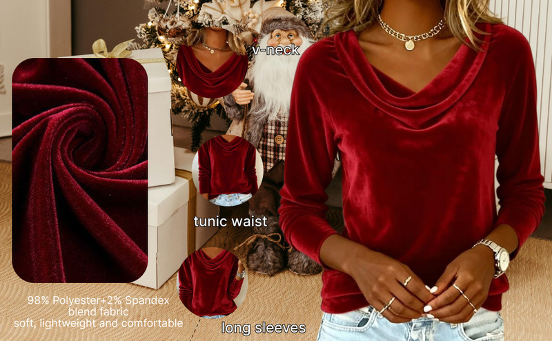 - Desgin: Velvet tops for women provide a graceful drape, allowing the cowl neckline to fall in soft, cascading folds. Keep a pleasant wearing experience while perfectly showcasing your neck curves, suitable for all occasions in spring, autumn and winter.