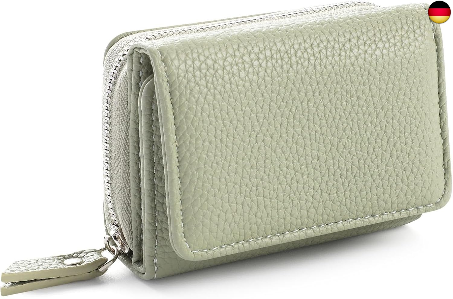 Geldbörse Damen Klein Leder Kleines Portemonnaie Damen Mini Geldbeutel mit Zipper Münzfach Kartenfächer, Grün