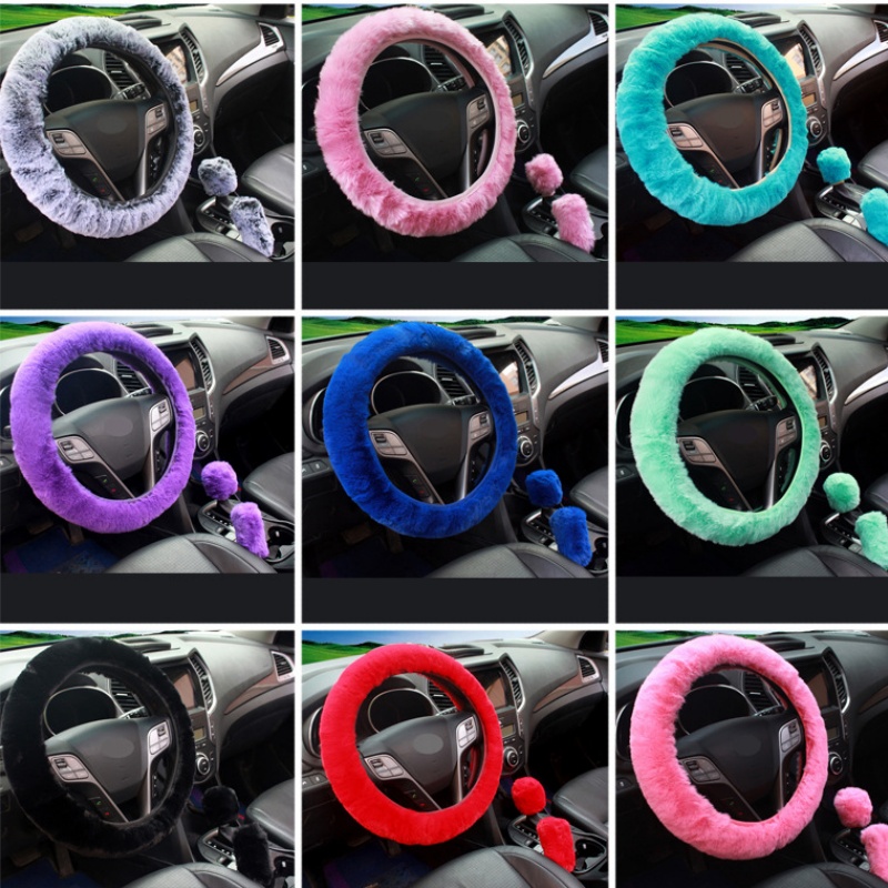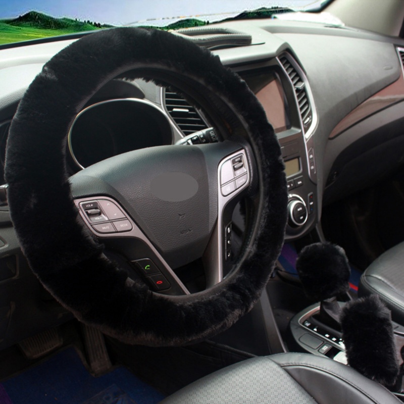 Plush Car Steering Wheel Cover with Handbrake Cover Gear Shift Cover 14" 1/2-15"