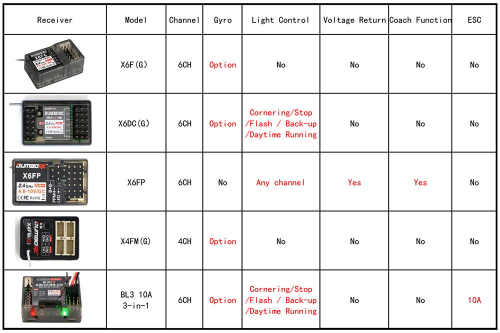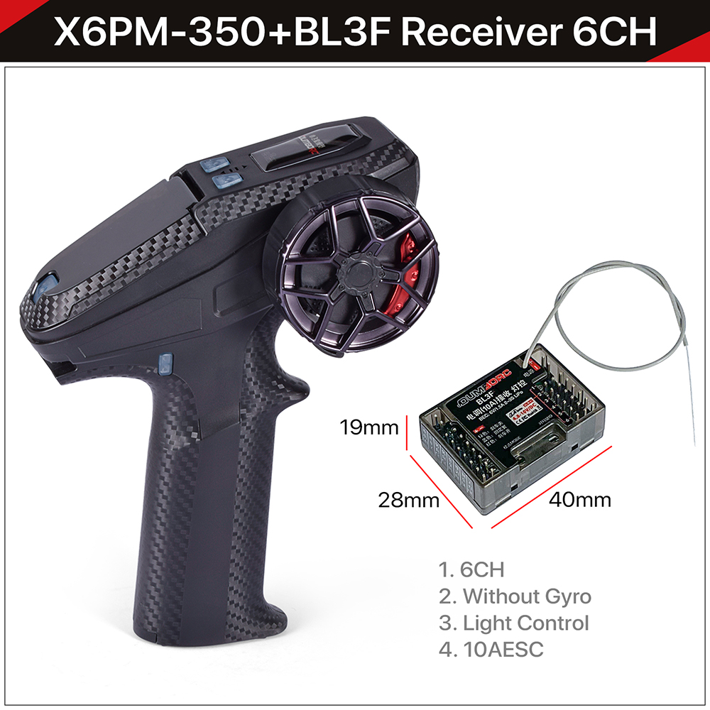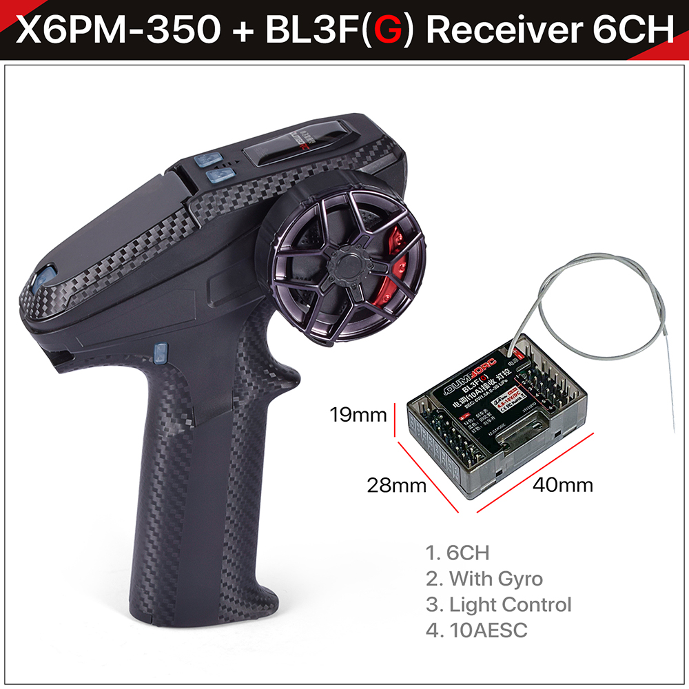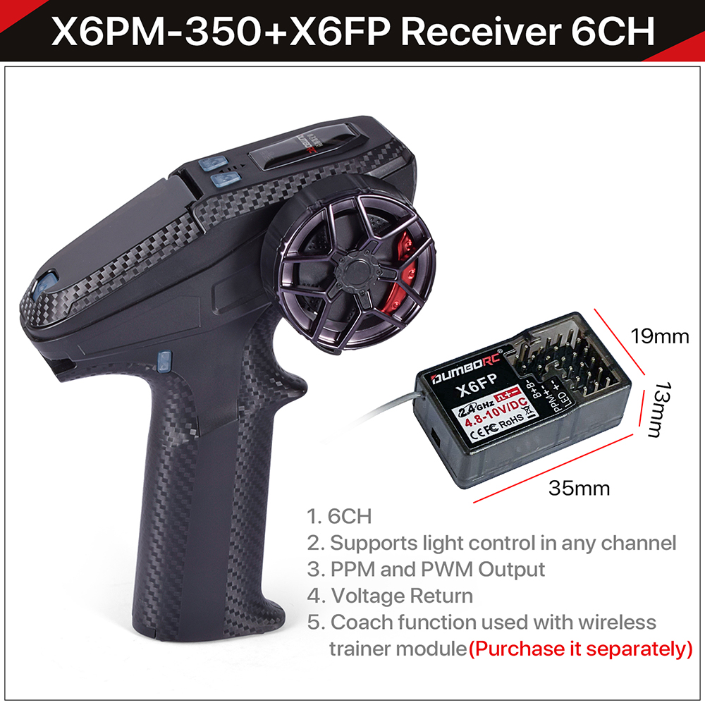 DUMBORC X6PM-350 Transmitter with BL3F/X6F/X6FP/X4FM/X6DC Receiver(Gyro or without Gyro), perfect used for RC Car Boat Tank model,2.4GHz Frequency. RC radio transmitter and receiver can stable control your model 400-500M, make good works and protect when it out of control.Low power alarm of remote controller: When the remote controller is predicted to be disconnected from the cars/boats/tanks, the remote controller can be driven back safely in advance, thus effectively avoiding the trouble of product loss or salvage.