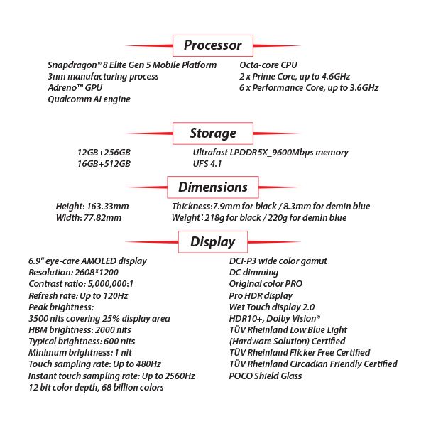 - Next-gen Snapdragon® 8 Elite Gen 5 Mobile Platform