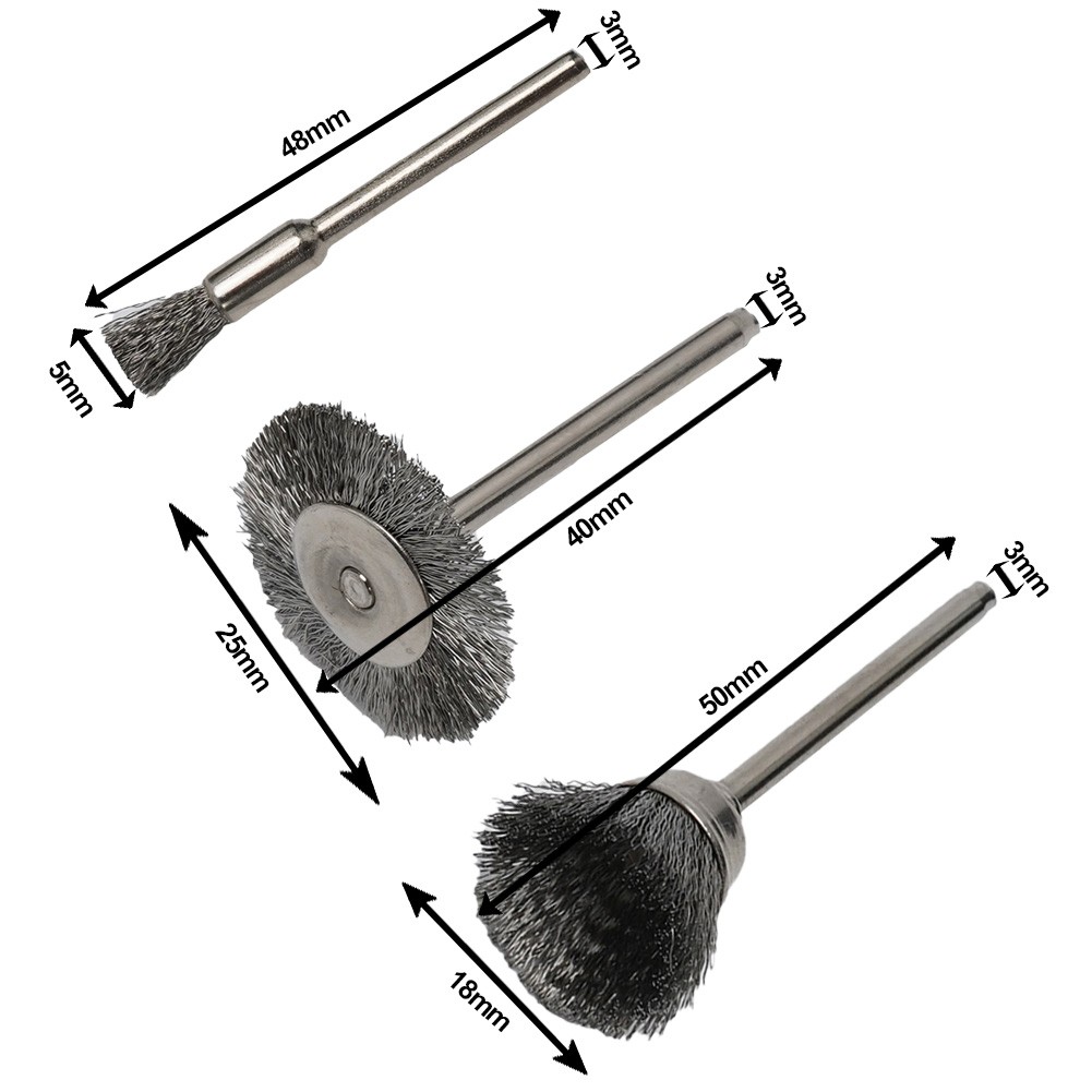 * Schüsseltyp: Länge: 50 mm Schaftdurchmesser: 3 mm Bürstendurchmesser: 15 mm