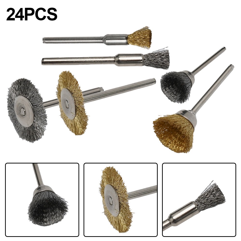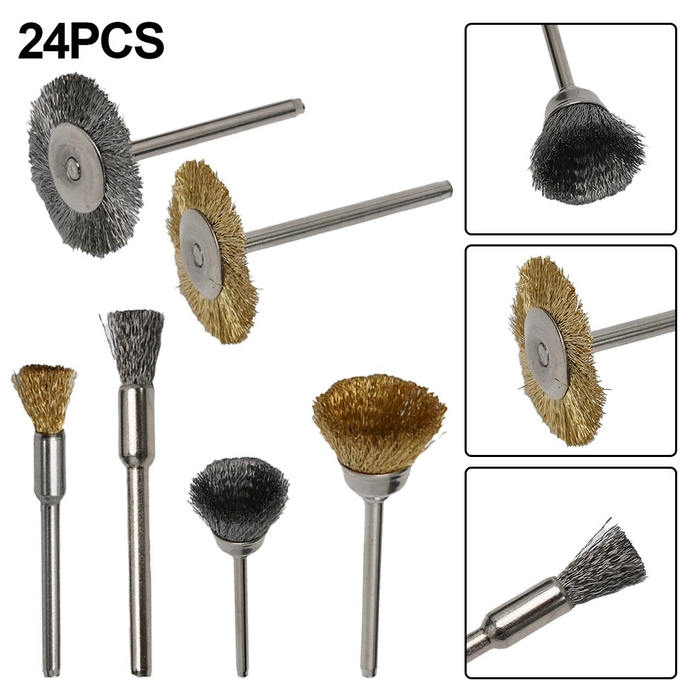 24 Stück Messing & Edelstahl Drahtbürste