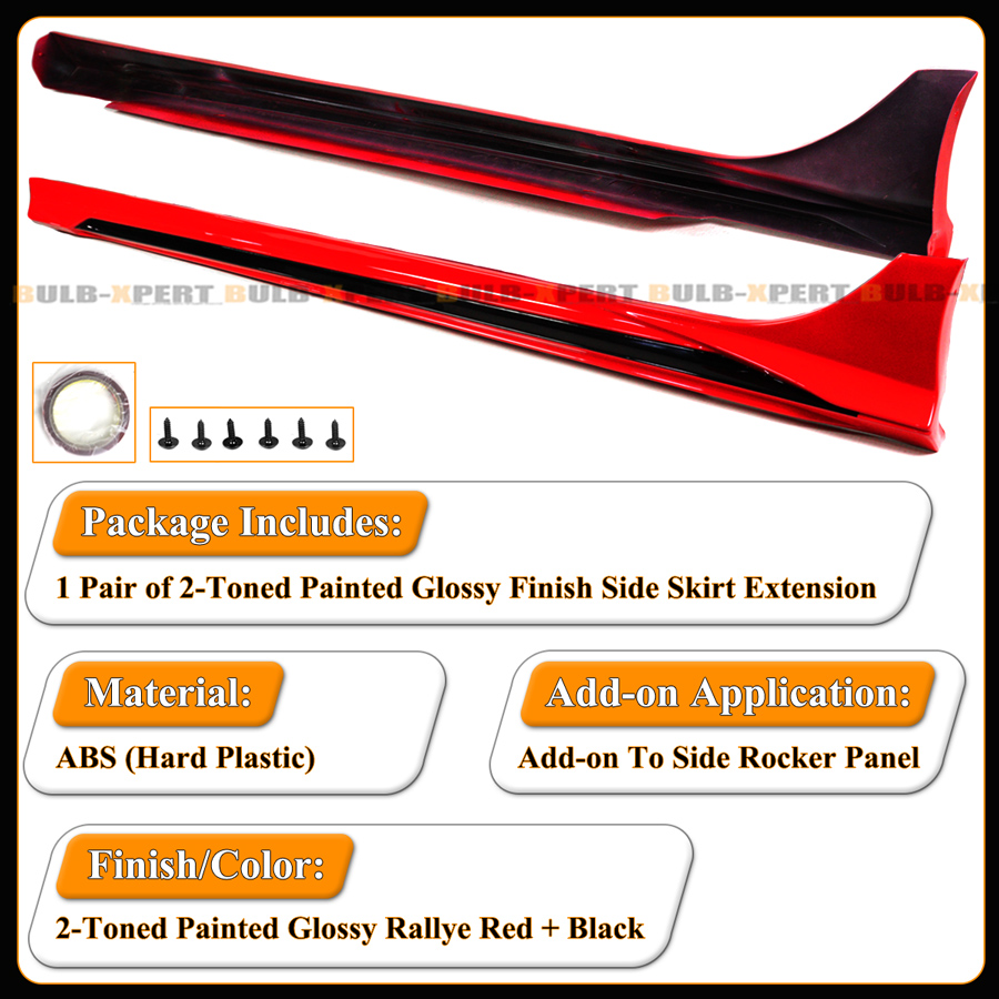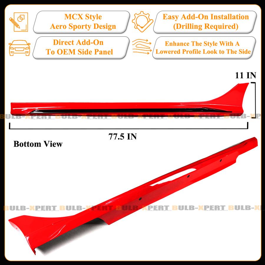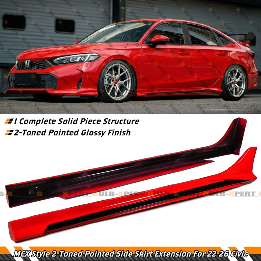 For 2022-2026 Honda Civic MCX Style Rallye Red Black 2 Tone Side Skirt Extension