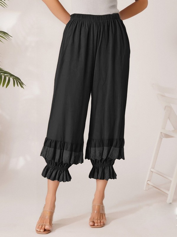 The two-layer ruffled lace design adds a feminine and romantic element, making the pants stand out in the crowd.