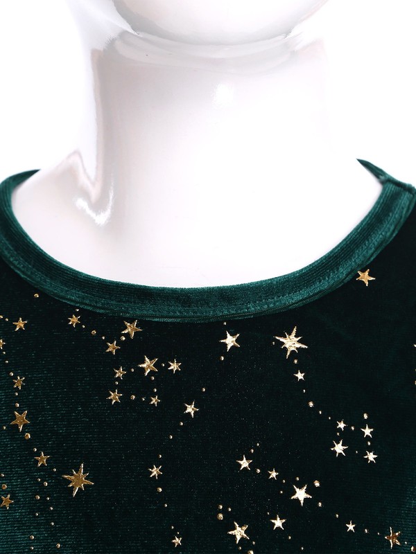 The star print on the velvet fabric adds a touch of whimsy and holiday charm, making it a trendy and eye-catching piece for the festive season.