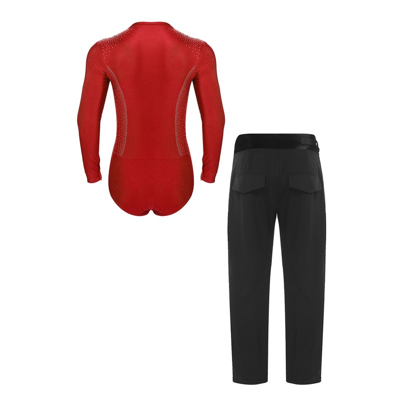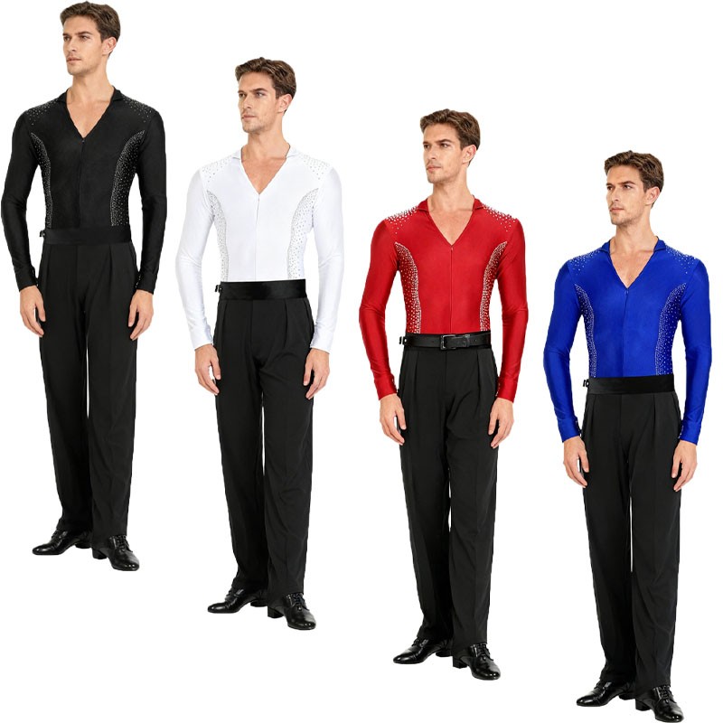 Mens Dancewear Salsa 2 Piece Competition Outfits Ballroom Long Sleeve Chacha