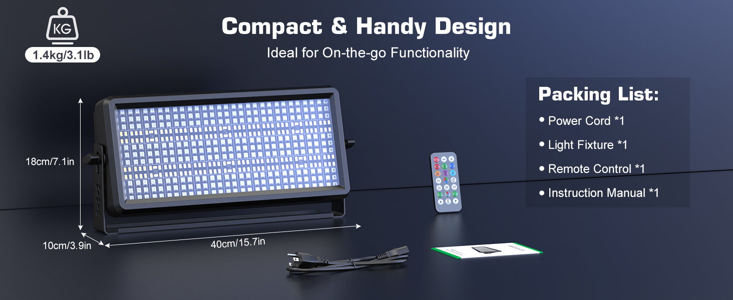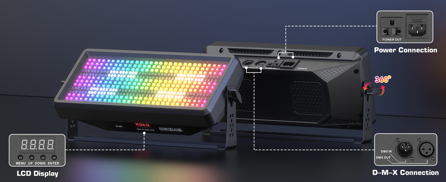 This product features an exquisite, compact, and lightweight appearance. Its nylon - plastic casing is heat - resistant, anti - oxidant, and durable. The light source is composed of 270 full - color LEDs and 180 0.5W white LEDs, delivering pure colors and uniform color mixing. The different LEDs are controlled in multiple segments, enabling users to self - program a wide variety of lighting effects. It has multiple built - in effects, with adjustable effect flow speeds and MIC sensitivity. Even without programming, it can produce stunning lighting effects. This product supports various control modes, is easy to operate, and is widely applicable to various occasions such as performances, stages, and clubs.