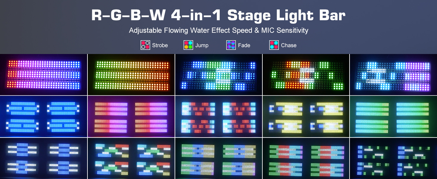 3.Rich and Adjustable Built - in Effects:There are multiple built - in effects such as fade, jump, flash, and marquee show. Not only can the running speed of the effects be adjusted, but also the MIC sensitivity. Gorgeous lighting effects can be created without programming.
