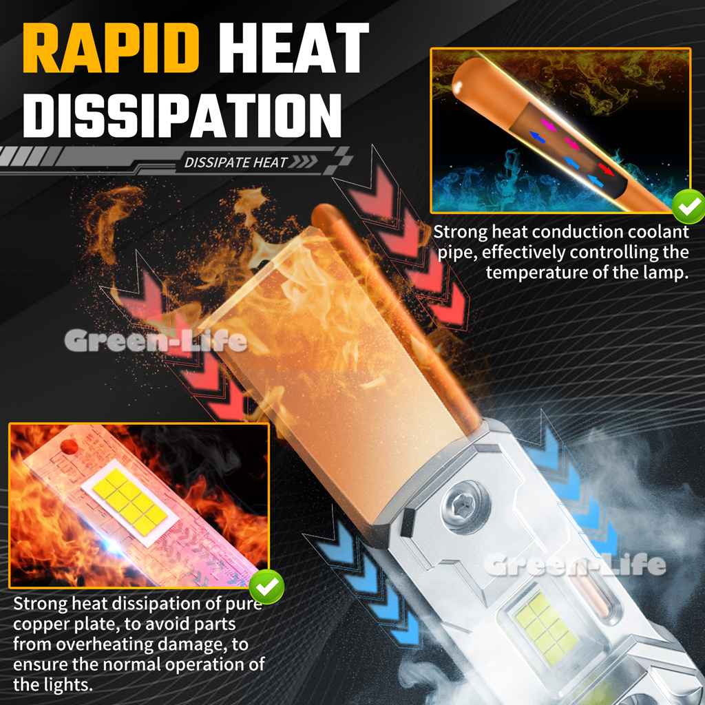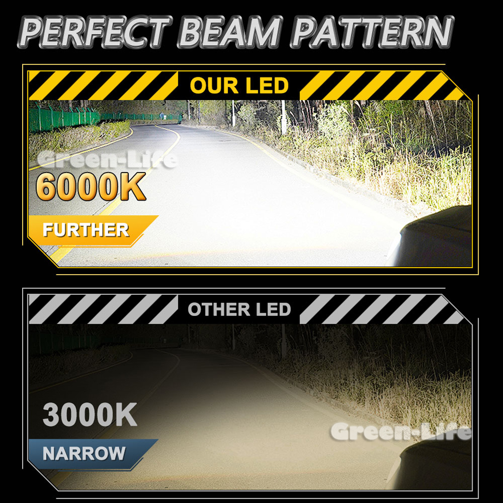 ● 300% Penetrating Brightness: Equipped with premium CSP chips to deliver 12,000 LM consistent light output. 6500K White strong penetration ability.