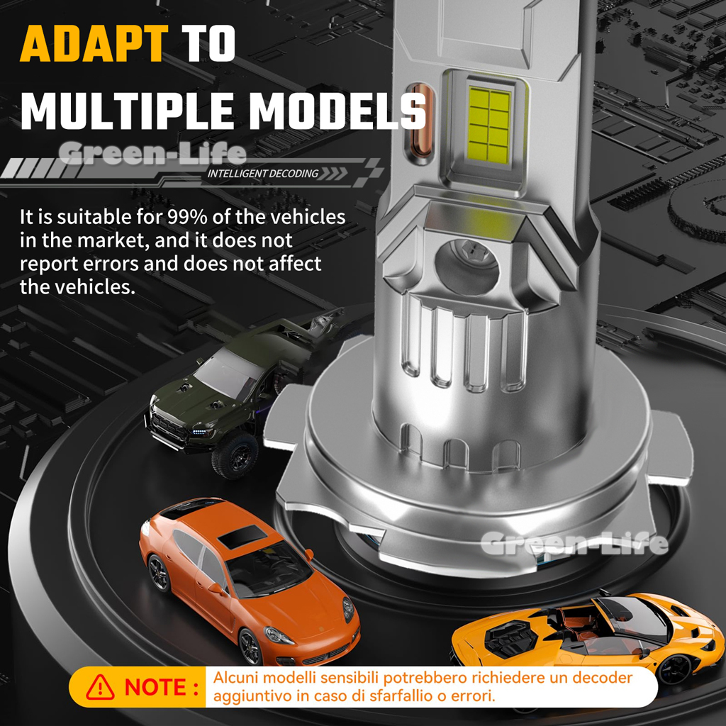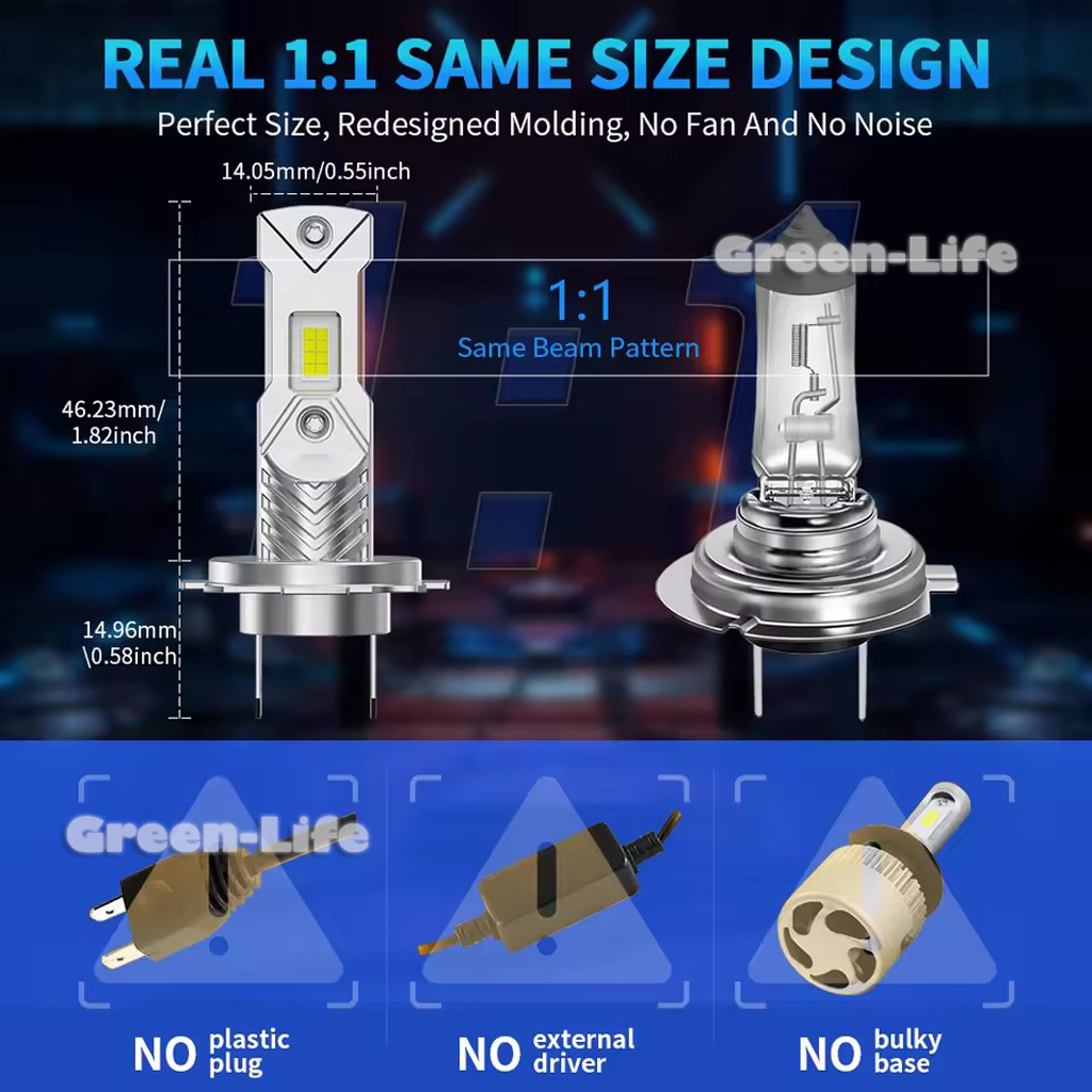 ● Fit for 99% Vehicle: Built-in intelligent upgraded IC driver, Can bus-ready, No Radio Interference, No Error, No Lights Flashing. H7 led bulb is compatible with H1 or daytime running lights