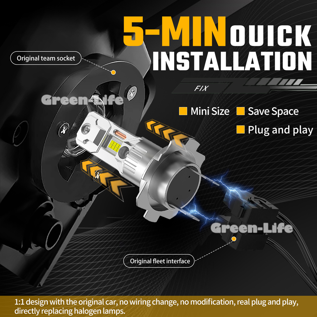 ● 100% Successful Installation: Perfect 1:1 base design as original bulb, Non-polarity and Plug & Play, no bulky base, no external driver and wire required. Fits into stock bulb housing and sockets for 3-min installations Fit for H7 led fog light bulbs