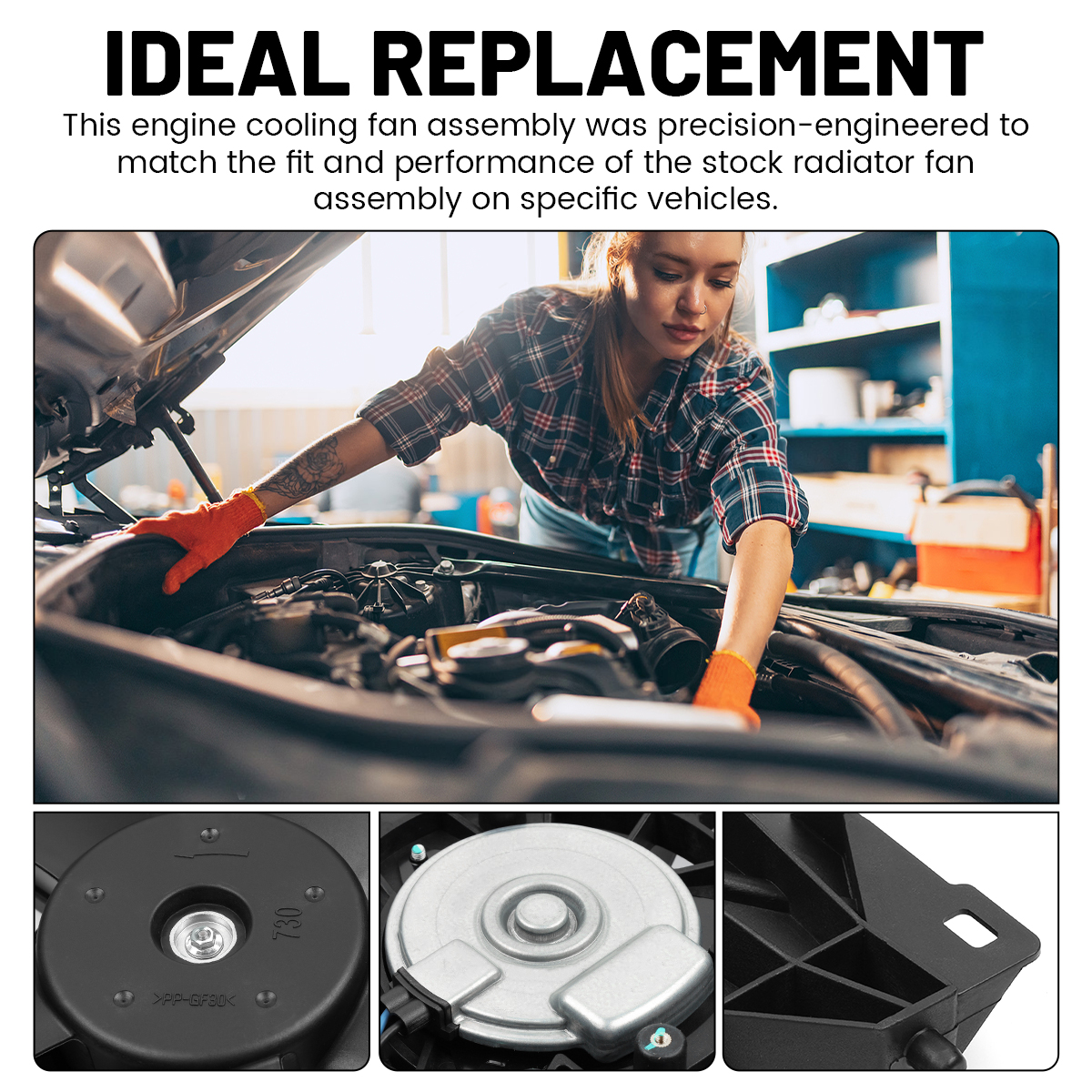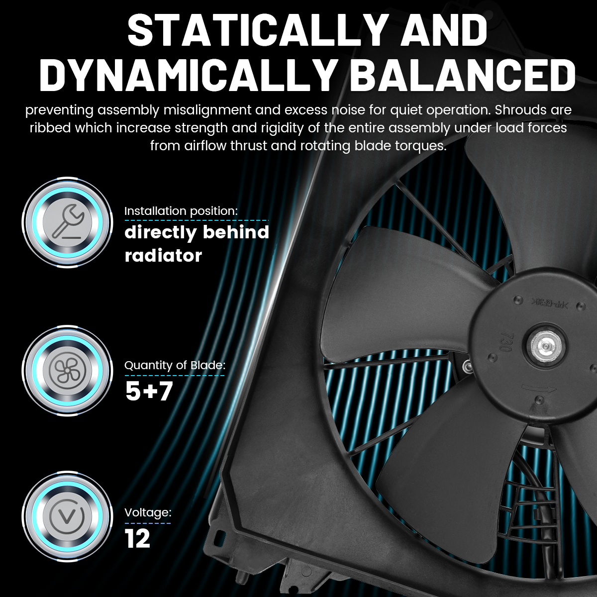 2.Ideal replacement.This engine cooling fan assembly was precision-engineered to match the fit and performance of the stock radiator fan assembly on specific vehicles.