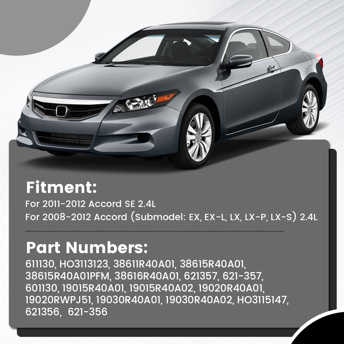 For 2008-2012 Accord (Submodel: EX, EX-L, LX, LX-P, LX-S) 2.4L