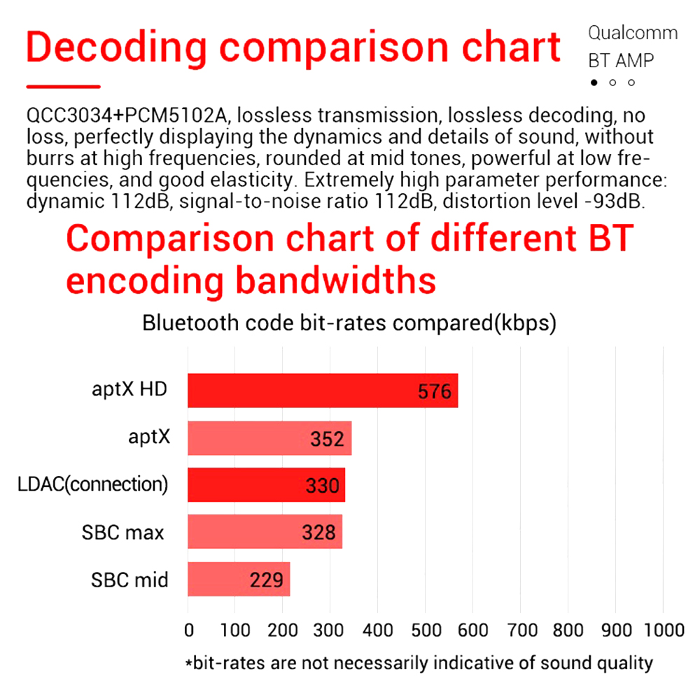 3.QCC3034+PCM5102A, lossless transmission, lossless decoding, no loss, perfect display of the sound of all dynamics and details, high-frequency burr-free, rounded midrange, low-frequency powerful, elastic.