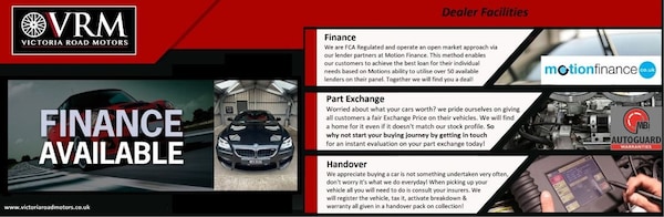 Welcome to Victoria Road Motors, Buy with confidence from a reputable independent used car dealership here at VRM, all vehicles have walk round videos uploaded to our website, enabling you to see the condition of each vehicle in a bit more detail. All vehicles come with a new MOT along with Oil & Filter Services (Extended mechanical options also available!). We offer extended warranty options via our trusted partners at Autoguard Warranties, complementary Break Down Cover is active on all vehicles for additional peace of mind. Our experienced team are here to help you navigate your next purchase, from Competitive Part exchange, Finance, Warranty and Aftersales our friendly team are here to assist. Extensive handovers as standard to go through your new vehicle with you in our handover bay. You will receive all your paperwork in a sales pack, while we complete everything for you on the day, all you need to do is consult your insurance! See something you like? We are here to Help. .Apple Car Play, Wireless Charging, Bluetooth Connection, Satelitte Navigation, Reverse Parking Sensors, Cruise Control,