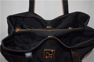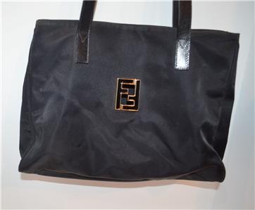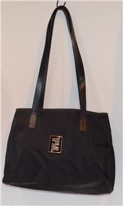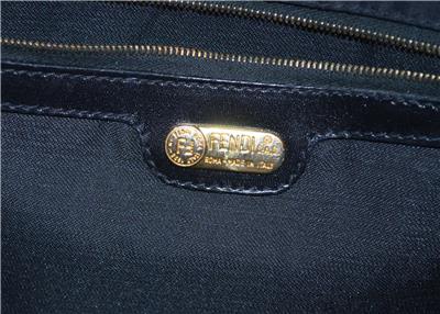 VINTAGE FENDI ZUCCA FF LOGO BAG GOLD TONE HARDWARE LEATHER TRIM FLAT LEATHER HANDLES SNAP TOP CLOSURE INTERIOR 2 LARGER COMPARTMENTS PLUS CENTER ZIPPER COMPARTMENT AND SIDE COMPARTMENT W ZIPPER CLOSURE MEASURES 11" X 14" X 4" HADLE DROP 13"