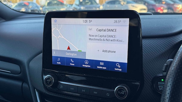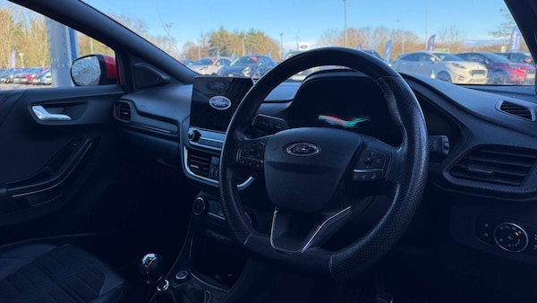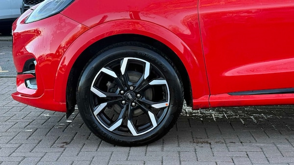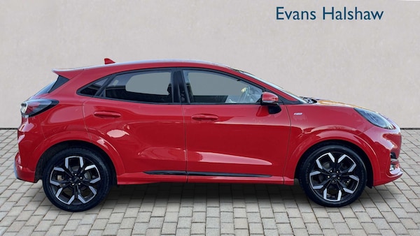 18in Alloy Wheels - 5-Spoke - Matt Black Machined Finish, Acoustic Laminated Windscreen, Active Grille Shutter, Electric Windows - Front and Rear, Ford Easy Fuel System, Front Bumper - Unique ST-Line Sport Design - Body Colour, Front Door Threshold Plates - ST-Line, Large Rear Spoiler - Body Colour with Centre High Mounted Stop Light, Locking Wheel Nuts, Lower Bodyside Moulding - Body Colour, Power-Foldable Heated Door Mirrors with Puddle Lamps, Privacy Glass, Puma Badge, Quickclear Heated Windscreen, Rear Bumper Body Colour - Diffuser, ST-Line Badge, ST-Line Body Styling Kit, Tyre Inflation Kit, ABS - Anti-lock Braking System, Electronic Stability Control - ESC with Traction Control and Emergency Brake Assist - EBA, Emergency Brake Warning - Automatic Hazard Warning Lights, First Aid Kit Strap, Post Collision Braking, Remote Central-Double Locking, Thatcham Alarm, Automatic Headlights with Rain-Sensing Wipers and Auto High Beam, B&O Premium Audio System and Ford SYNC 3 Navigation, Cruise Control - Lane Keeping Aid and Lane Departure Warning, Front Fog Lights with Cornering lights and LED Rear Lamps, Power Steering, Pre-Collision Assist with Autonomous Emergency Braking and Pedestrian-Cyclist Detection, Projector Headlamps with LED Daytime Running Lights, Rear Parking Sensors, Selectable Driving Modes - Normal - Eco - Sport - Slippery and Trail, Speed Limiter, Sports Suspension, Trip-Fuel Computer, Tyre Pressure Monitoring System - TPMS, Wireless Charging, Automatic Dimming Rear View Mirror, Carbon-Look Interior Deco Spears, Centre Console with Armrest - Stowage, Courtesy Lights - Ambient LED Courtesy Lighting - Single Colour, Driver and Passenger Seat Lumbar and Height Adjustment, Electronic Air Temperature Control - EATC, Floor Mats - Front and Rear, Ford MegaBox Extended Bootspace, Ford Power Starter Button, Front Seats - Sports Style, Full Digital 12.3in Instrument Cluster, Gearshift Knob - Soft Feel with Red Stitching, Headliner - Deluxe, Instrument Panel - High Level, Rear Seats - 2-Way Head Restraint Up-Down, Rear Seats - Second Row 60-40 Folding Seats, Restrain Device Pack, ST-Lined Flat-Bottomed Leather Steering Wheel - Leather Handbrake and Aluminium Gear Knob, Stainless Steel Pedal Covers with Rubber Inserts
