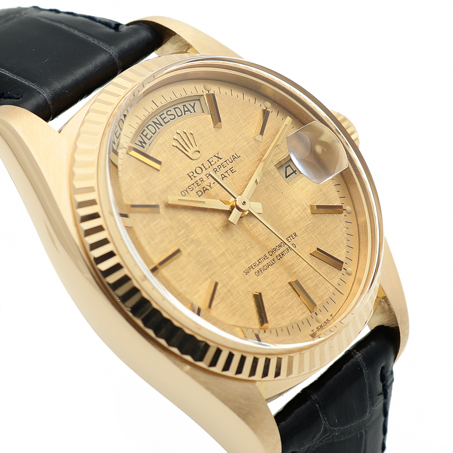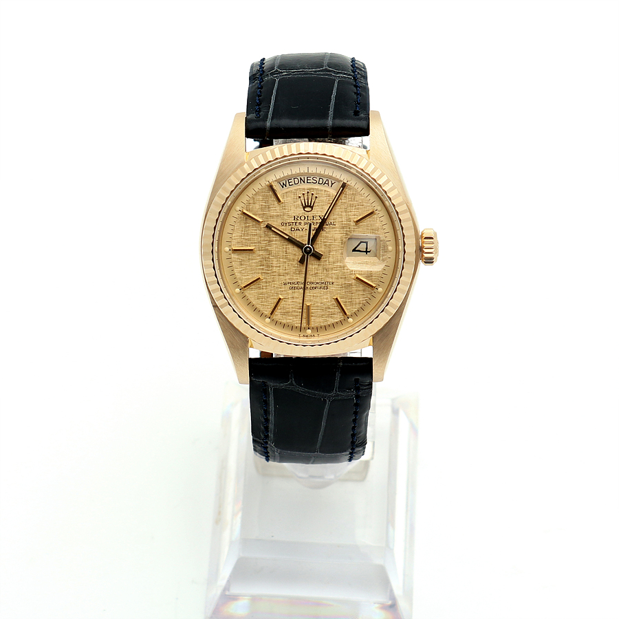 - Special Day-Date more lovely than a girlfriend. - Originally brought in just the head during purchase, stylish leather strap fitted in our shop. - No signs of use even before maintenance; truly a remarkable item as it retains the original back case sticker. - The back case sticker has aged beautifully, adding a treasure-like feel. - Highly recommended for vintage Rolex enthusiasts, especially those born in 1976, making it a significant collectible. - Experience the charming 1803 model. - The design of the Day-Date was already perfected back then and remains so today. - This vintage piece offers a unique appeal with its special materials including mother-of-pearl and the rare Bokashi dial. - The Bokashi pattern enhances the gold's understated richness, adding elegance with a soft sheen. - Perfect partner for those hesitant due to styling concerns, blending smoothly with all outfits while showcasing distinctive tastes. - Polishing completed by a private service; excellent condition for its age. - Includes watch, shop warranty certificate (2 years of free service post-purchase), case, manual, portable pouch, and microfiber towel. - Model number: 1803 - Unique ID: 414**** (Year: 1976) - Features: 36mm, 18K yellow gold case, Bokashi patterned gold dial, applied indices, date and day windows, mother-of-pearl glass, soft washed navy-colored OEM glossy crocodile leather strap, plated steel pin buckle. - Movement: Automatic watch; avoid setting the time or date between 8 PM to 3 AM. Requires overhaul every 4-5 years; remember regular check-ups are essential for luxury watches to last generations. Due to the nature of automatic and early-type models, there is no quick-change feature. Adjust the date by rotating the hour hand. Ideal for those who love the analog feel and vintage allure and are willing to invest a little effort. - Gender: Men - Brand: ROLEX - Product Name: Rolex Unused Bokashi Dial Day-Date 36 Vintage 1803 Men's Leather Watch 149304305 - Condition: A+ - Color: Gold - trenbe Code: 149304305 |
