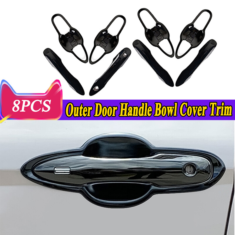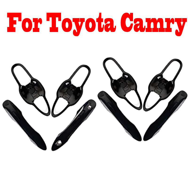 8pcs Black Car Outer Door Handle Bowl Cover Trim Fit For Toyota Camry 2018-2023