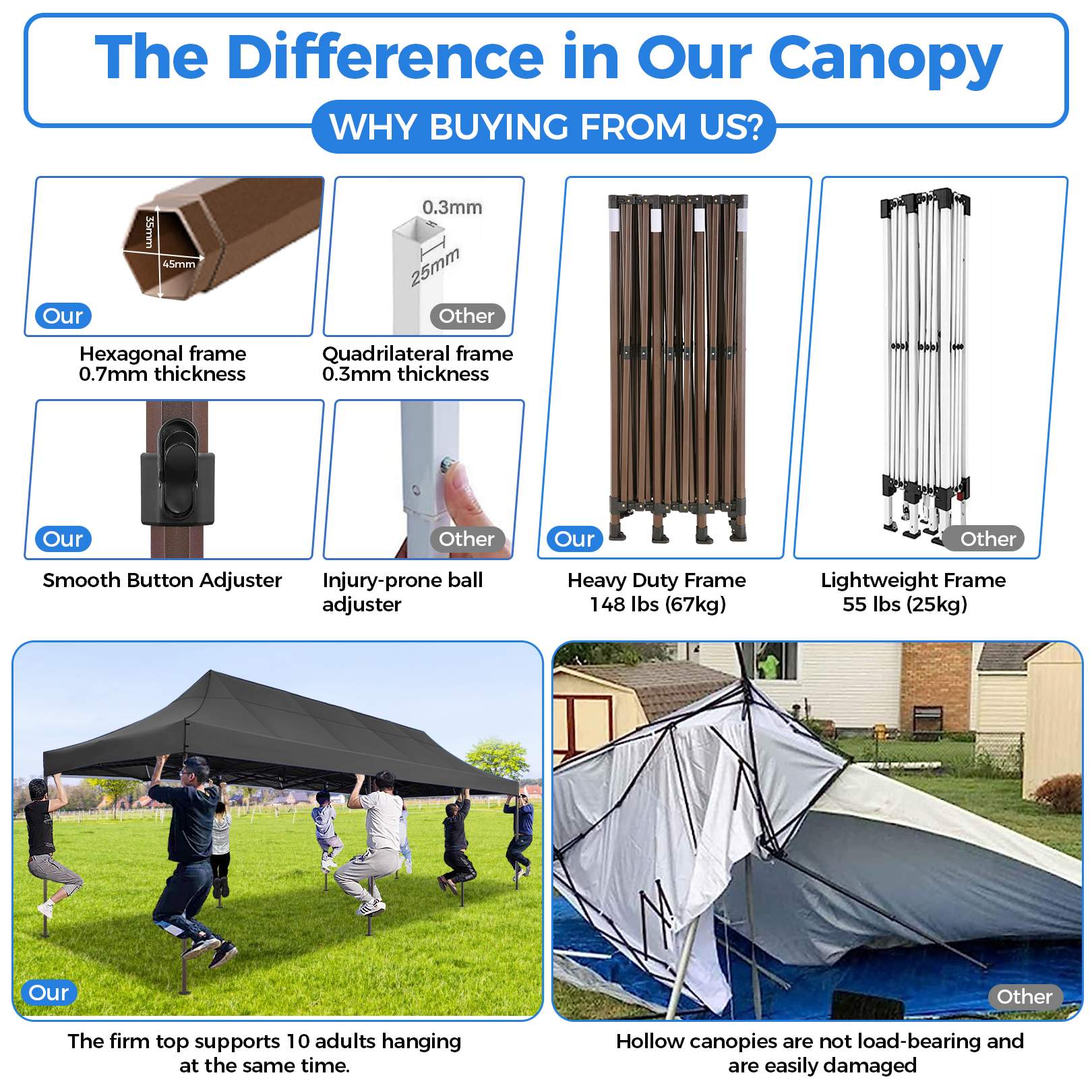- Frame:Pre-assembled Commercial-grade full truss construction and coated upgrade Hexagon Shaped legs