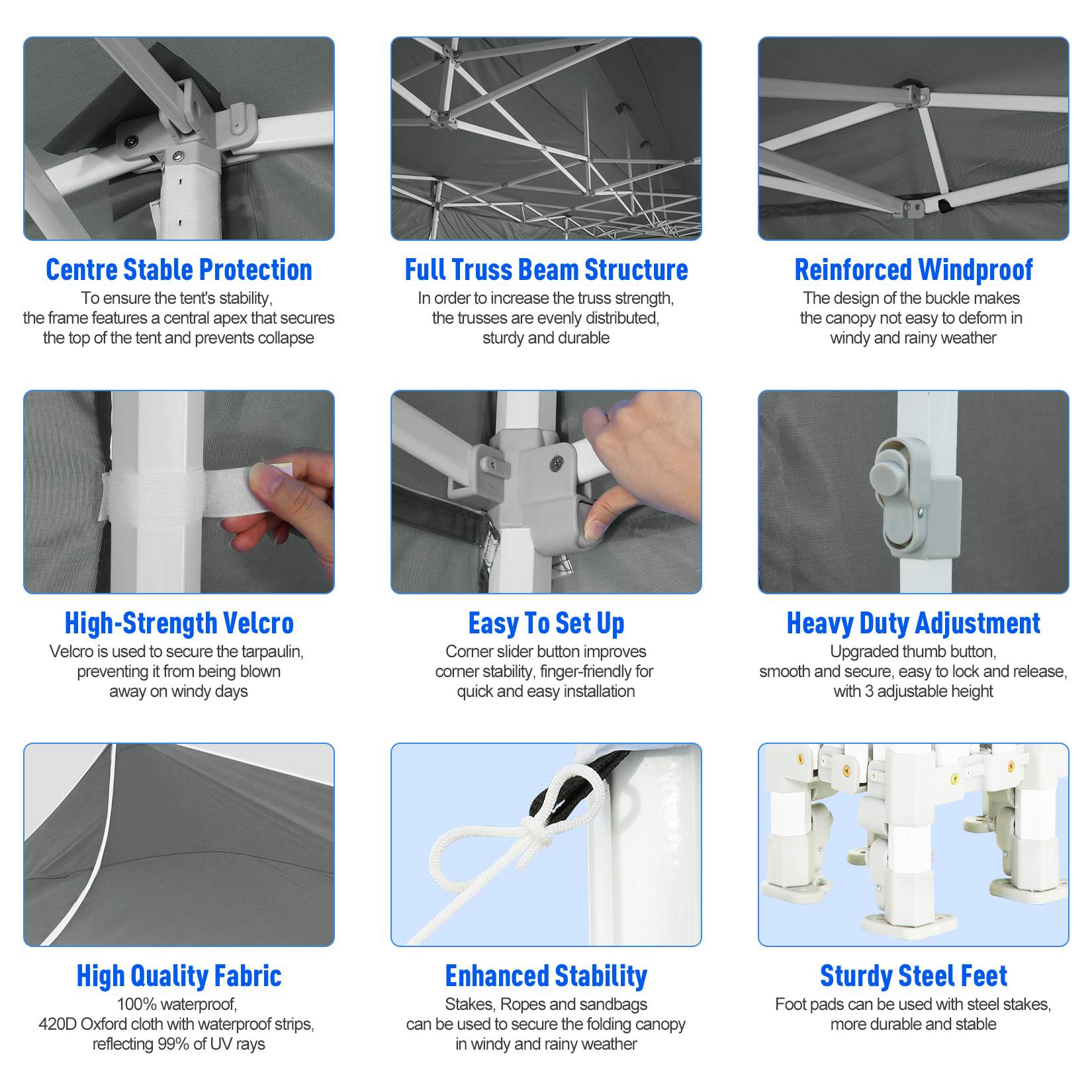 E - 10x30 Pop Up Canopy Tent for Parties Waterproof Commercial Instant Canopy 10x30 Party Tent for Backyard, Wedding Portable Outdoor Gazebo with CarrybagAbout this item- Color: Gray, Black, Blue, Khaki, White