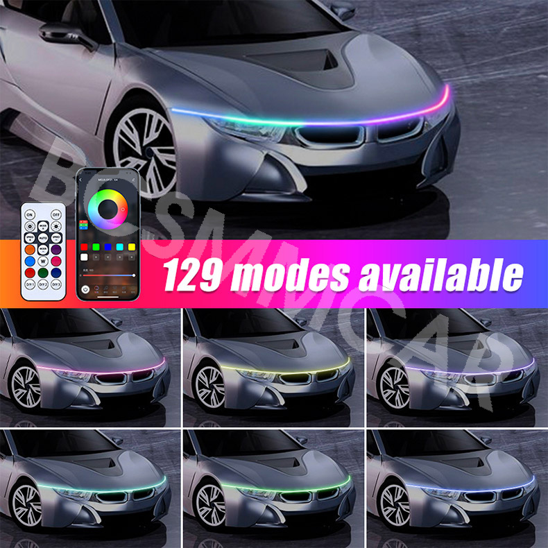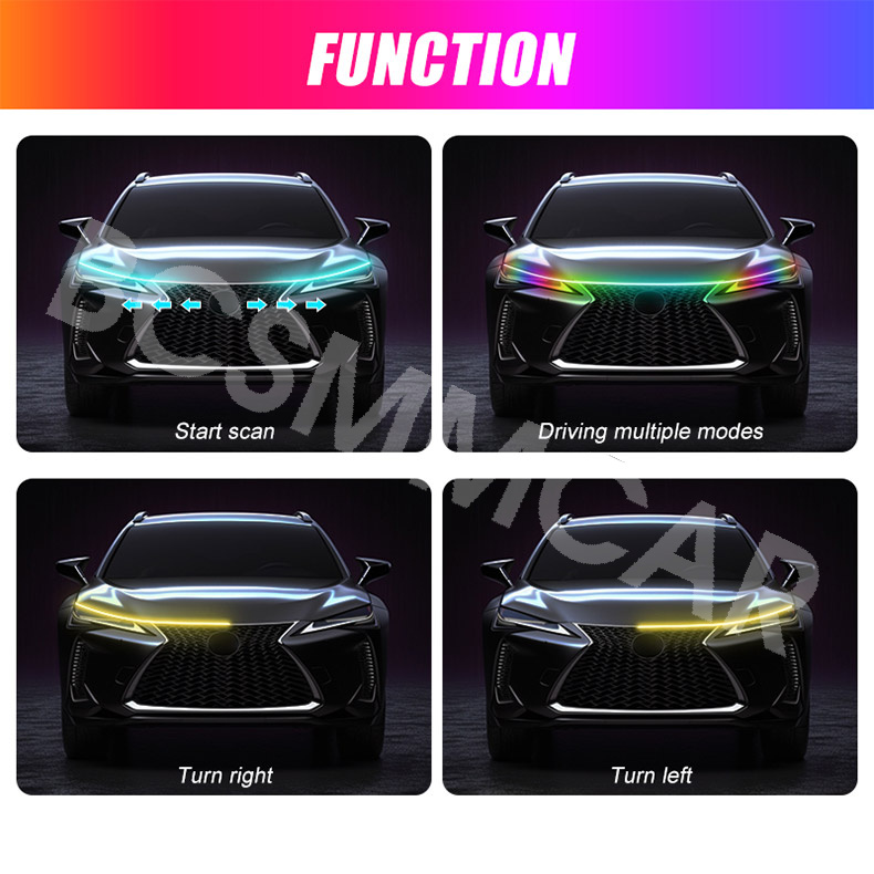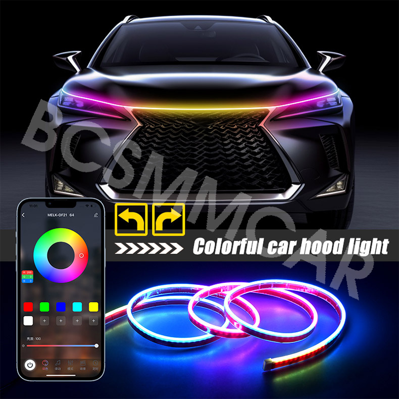 Dynamic APP LED Daytime Running Light RGB Colorful Auto Decorative Lamp Turn Signal Stream Car Hood Headlight Strip 1.8M