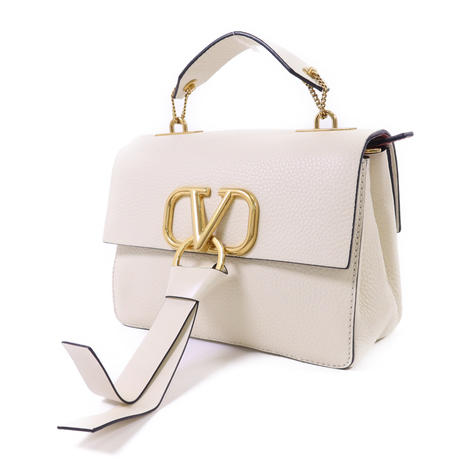 | Item Name | Valentino GHW VRing Top Handle 2 Way Shoulder Bag Calfskin Leather White |