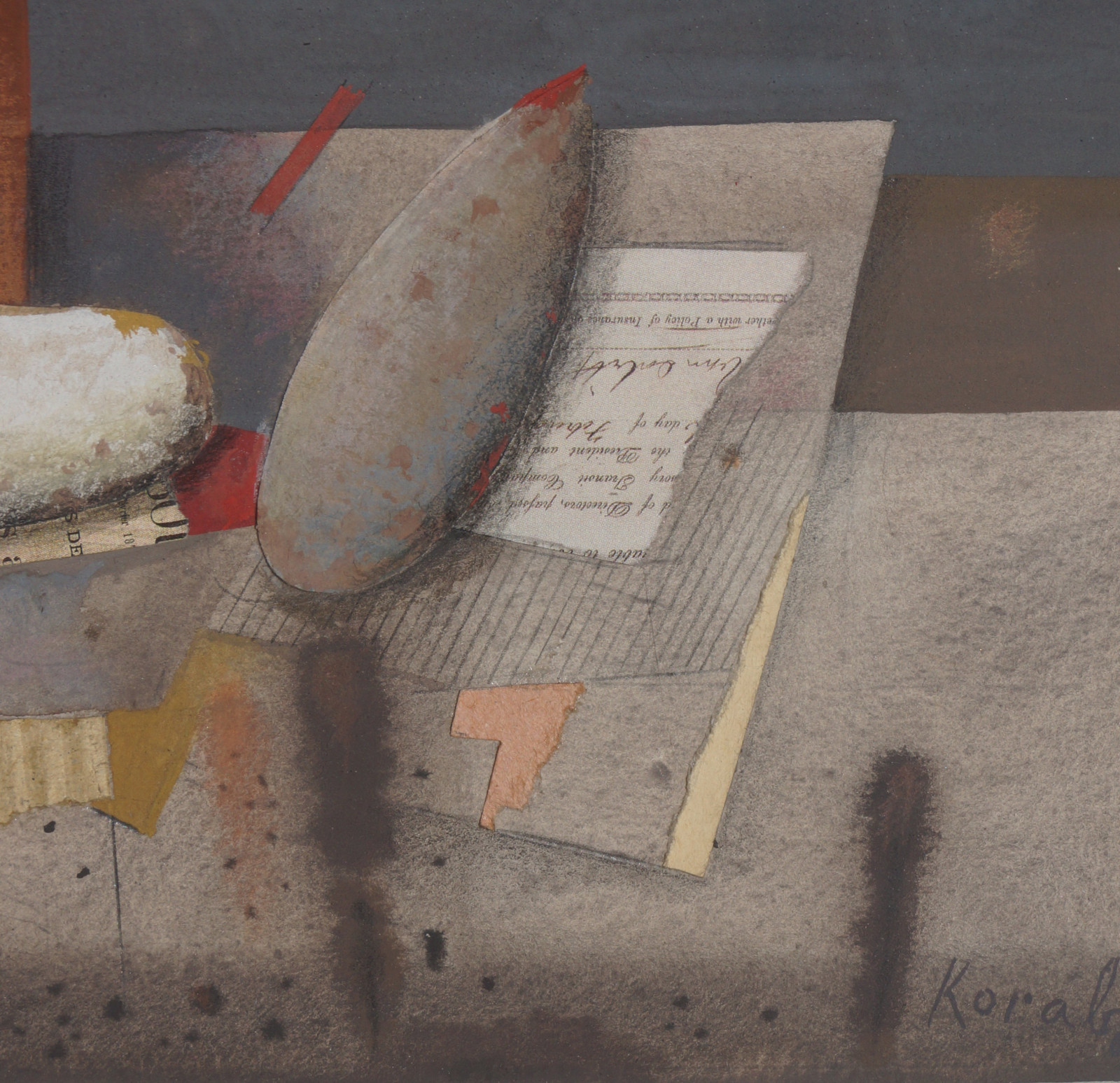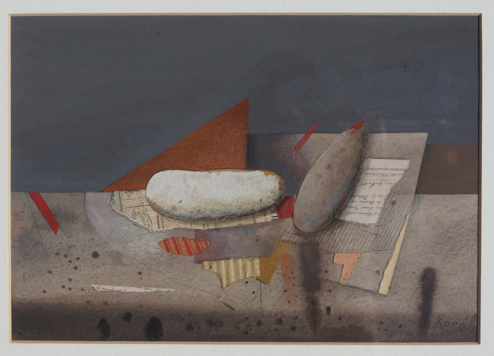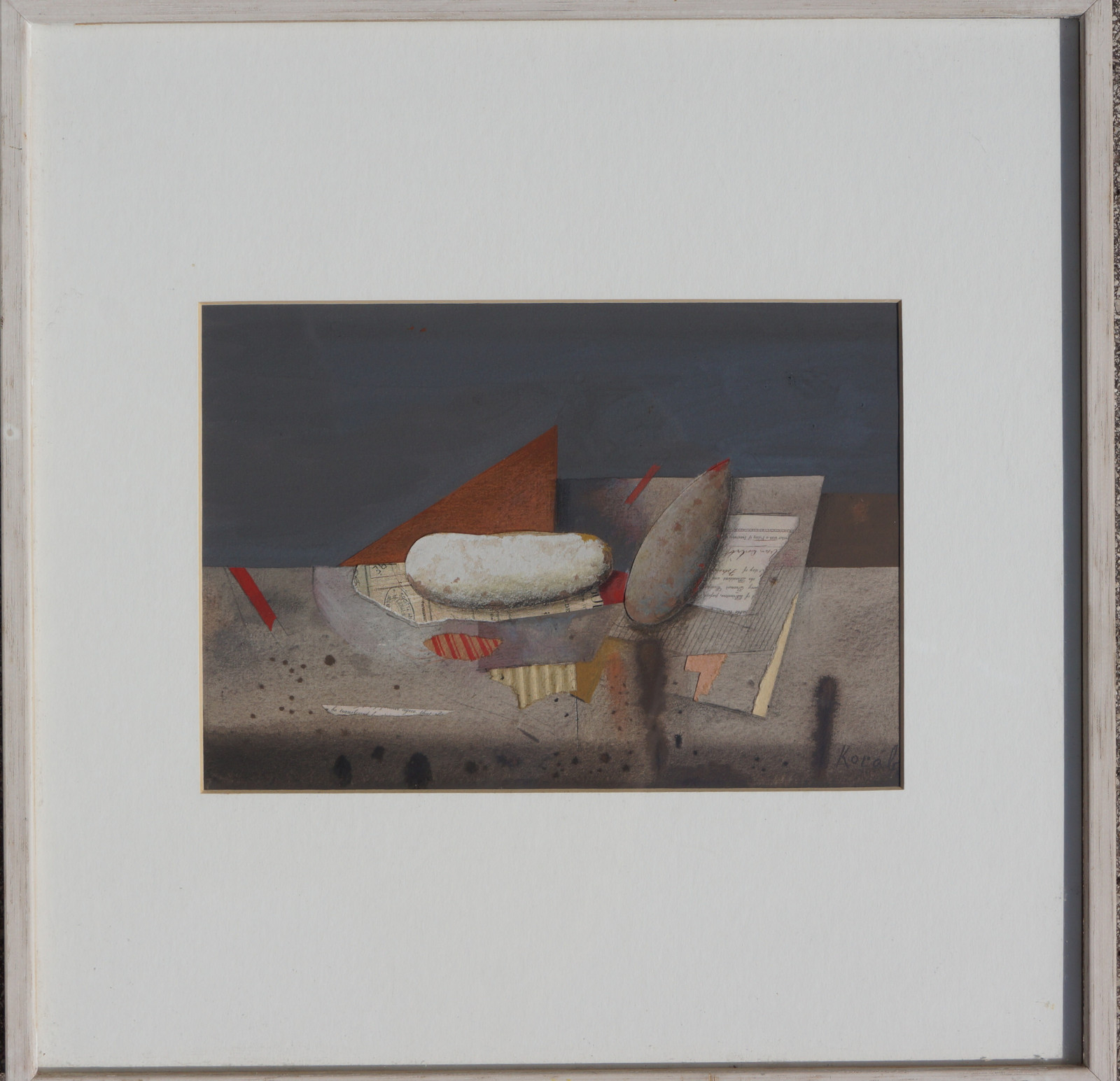 Karl Korab, Früchte, Gouache, Collage, 2002 Künstler: Karl Korab (*1937) Signatur: rechts unten Technik: Mischtechnik, Gouache, Collage Größe: 16,5x23 cm, mit Rahmen 36x36 cm Zustand: der Rahmen ist etwas bestoßen, sonst dem Alter entsprechend gut, siehe Fotos