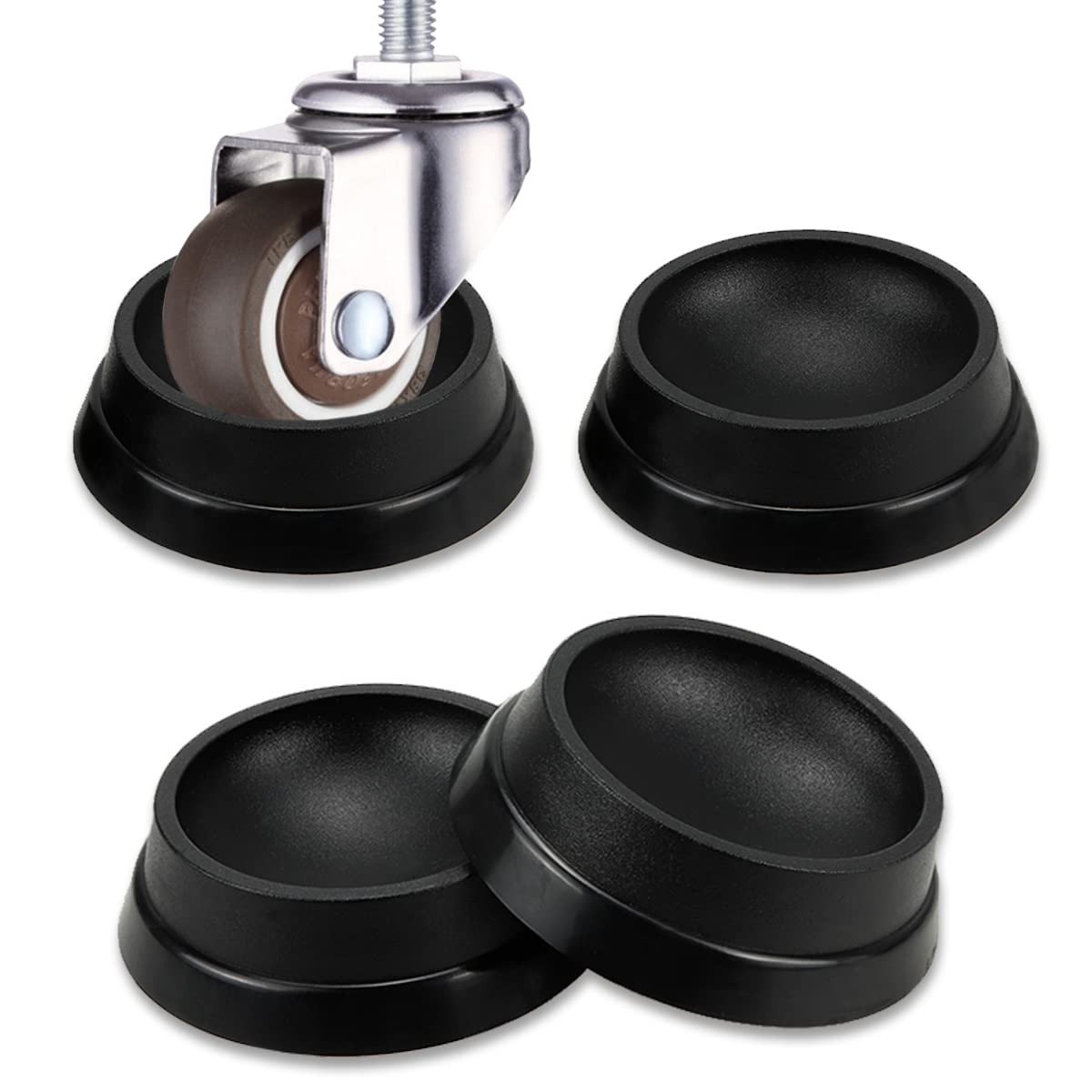 Furniture Wheel Caster Cups - Round Floor Protector Coasters Rubber Non-slip Foot Mats for small dining tables, chairs, sofas, dressers, wheelchairs, cribsProduct Features:1.Made of high quality rubber material, which is wear-resistant, not easily deformed and .2.Smooth bottom design with non-slip function.3.Wheel chair casters have a sturdy bottom design and enough thickness cushioning to protect the floor.4.Easy to Use and Widely Used.Package Including4 x furniture caster cupsColor: BlackMaterial: High quality rubber material.Size: inside diameter of 1.73 inches, an outside diameter of 2.48 inches, and a height of 0.7 inchesHow to use:Make sure the floor is clean and put the furniture wheels or crib wheels into the rubber foot pads. And check if the size of Furniture Wheel Caster Cups is suitable before use. Also the cleanliness of the floor determines the anti-slip effect.Check the product is not shaken onthe even surface before use.Caution1.Use only for its intended purpose2.Keep away from fire or near the heater and any place where is too hot.