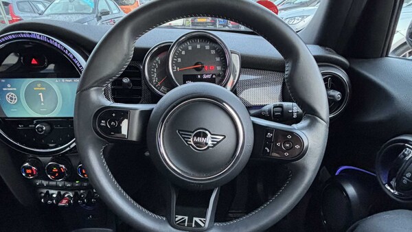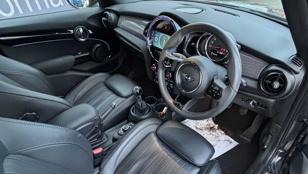 Enigmatic Black, MINI Yours Lounge Leather - Carbon Black, 17in Alloy Wheels - Tentacle Spoke in Black, Piano Black Exterior Trim, Roof and Mirror Caps - Black, Comfort Pack, Interior Trim - Silver Chequered, 12V Socket in Centre Console, 6 Speakers - in Front Door Trims and Underneath Front Seats, 8.8in Touchscreen with LED Ring, Apple CarPlay, Automatic Headlight Activation Switch, Bluetooth for Compatible Mobile Phone - with Audio Streaming, Cruise Control with Brake Function, Electro-Mechanical Steering with Speed Dependant Steering Assistance, FM Tuner and DAB Digital Radio, LED Headlights with Closed Ring as Daytime Driving Lights, MINI Driving Modes, MINI E-Call, On-Board Computer, PDC - Park Distance Control - Rear, Performance Control, Rear LED Lights with Union Jack Design, Teleservices, Tyre Pressure Monitoring System, 18in Alloy Wheels - British Spoke - 2-Tone with Run-Flats, Electric Windows, Exhaust Tailpipe - Left with Chrome Finisher, Flexible Car Sharing Preparation, Fuel Filler Cap in Body Colour, Heated Rear Window, Heated Windscreen Washer Jets, MINI Yours Badge on Exterior Pillar, Model Logo Cooper on Right of Tailgate, Radiator Grille - Chrome Border with Black High-Gloss Slats, Rear Fog Light, Roof and Mirror Caps - Silver, Side Scuttle Panels with Integrated Indicators, Sun-Heat Protection Glass, White Indicator Lenses, 3 Point Seatbelts on all Five Seats, Airbags, Alarm System, Anti-Lock Braking System - ABS, Dynamic Brake Lights, Dynamic Stability Control - DSC, Electronic Vehicle Immobiliser, Front and Rear ISOFIX - including Front Passenger Airbag Deactivation, Rear Window Wiper, Single Tone Fanfare Horn, 4 Lashing Eyes in Luggage Compartment, Air Conditioning - Manual, Carbon Black Colour Line - Knee Roll and Door Armrests, Chrome Highlights, Cup Holders, Door Sill Strips - Metal with MINI, Door Storage Compartments, Floor Mats - Velour, Foldable Rear Seats 60-40, Glove Compartment, Headliner - Anthracite, Instrument Cluster, Interior Lighting, Interior Trim - MINI Yours Aluminium, LED Reading Lights - Vanity Mirror Lights - Front Footwell Lights - Spotlights on Front Seats, Leatherette Gearshift Lever and Handbrake Gaiters, Mechanical Seat Adjustment, Multifunction Controls for Steering Wheel, Rain Sensor Window Wipers, Start-Stop Toggle including Keyless Go, Steering Column Height and Length Adjustment, Sun Visor with Vanity Mirrors, Tool Kit, Walknappa Leather Steering Wheel with Grey Seam