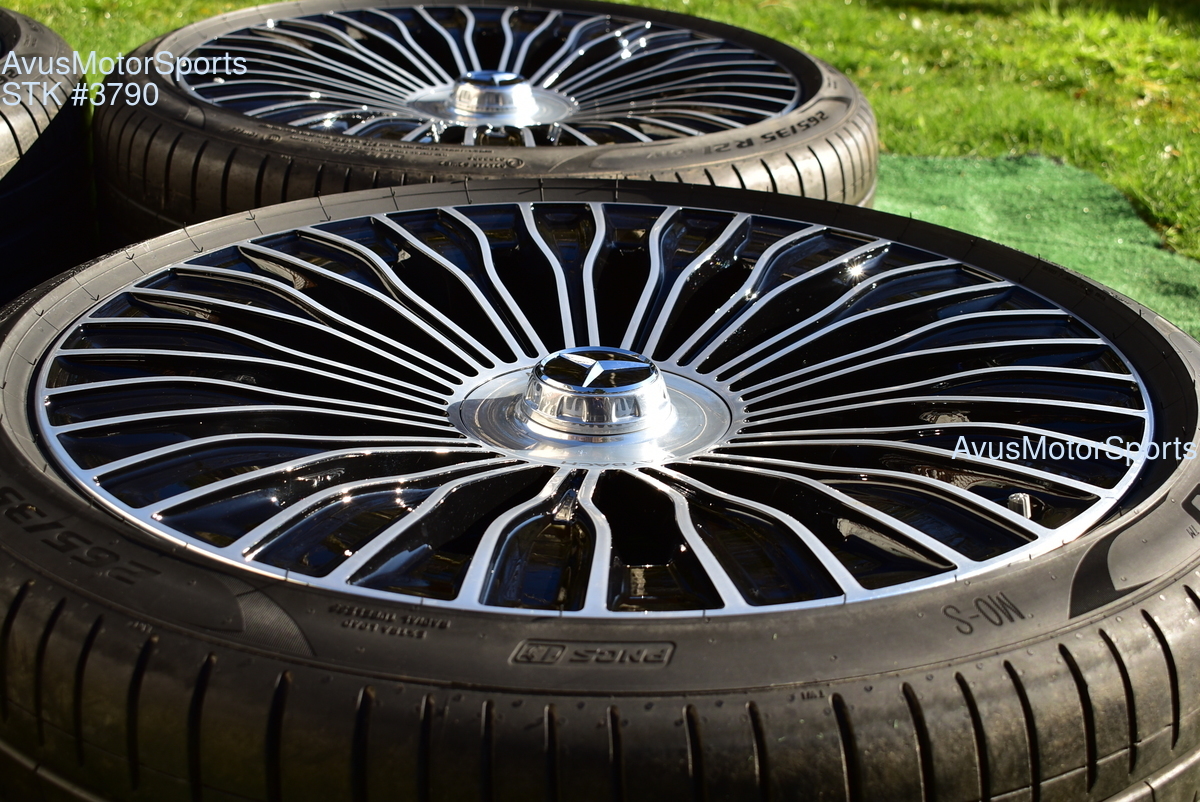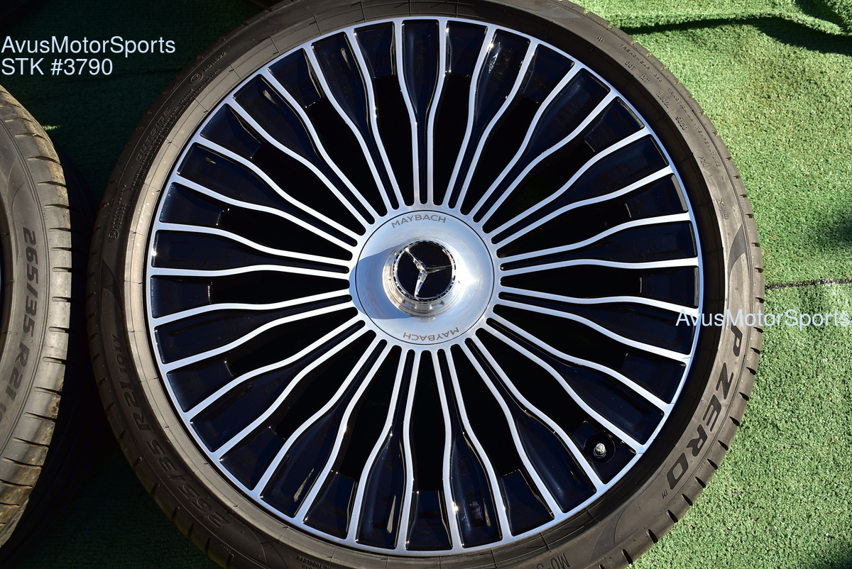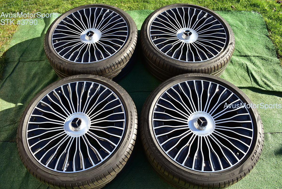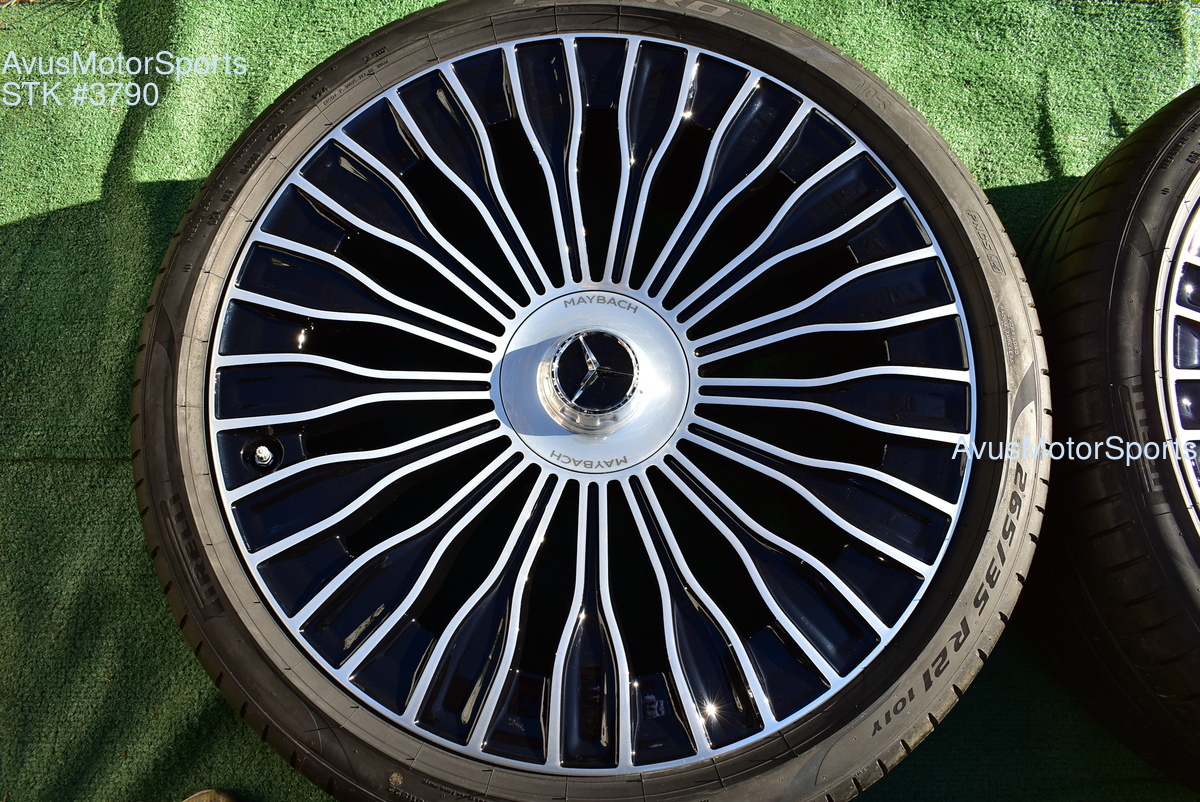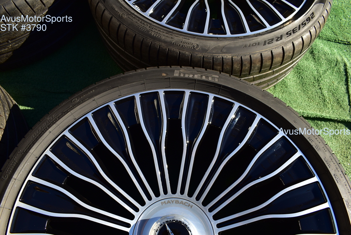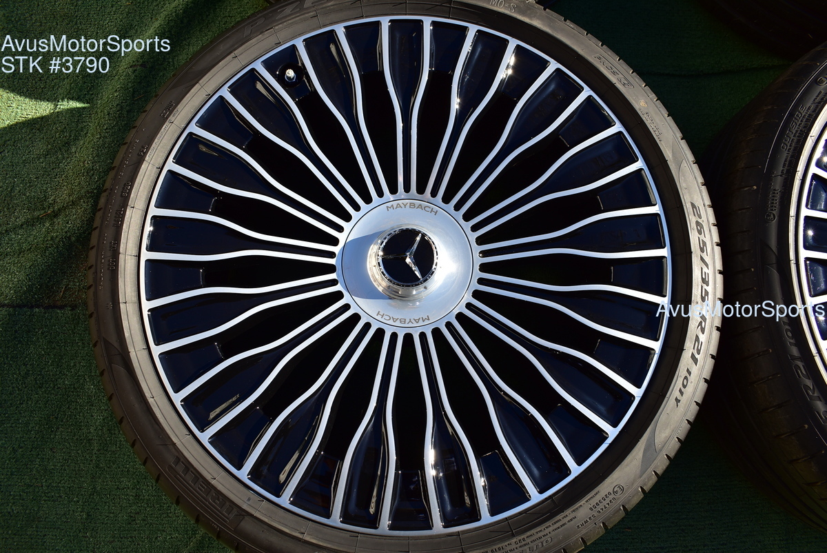 This listing is for a set of (4) 2021 Mercedes Maybach S580 S680 21" Factory Maybach optional Champagne Flute Wheels & Pirelli 265/35R21 . Please review