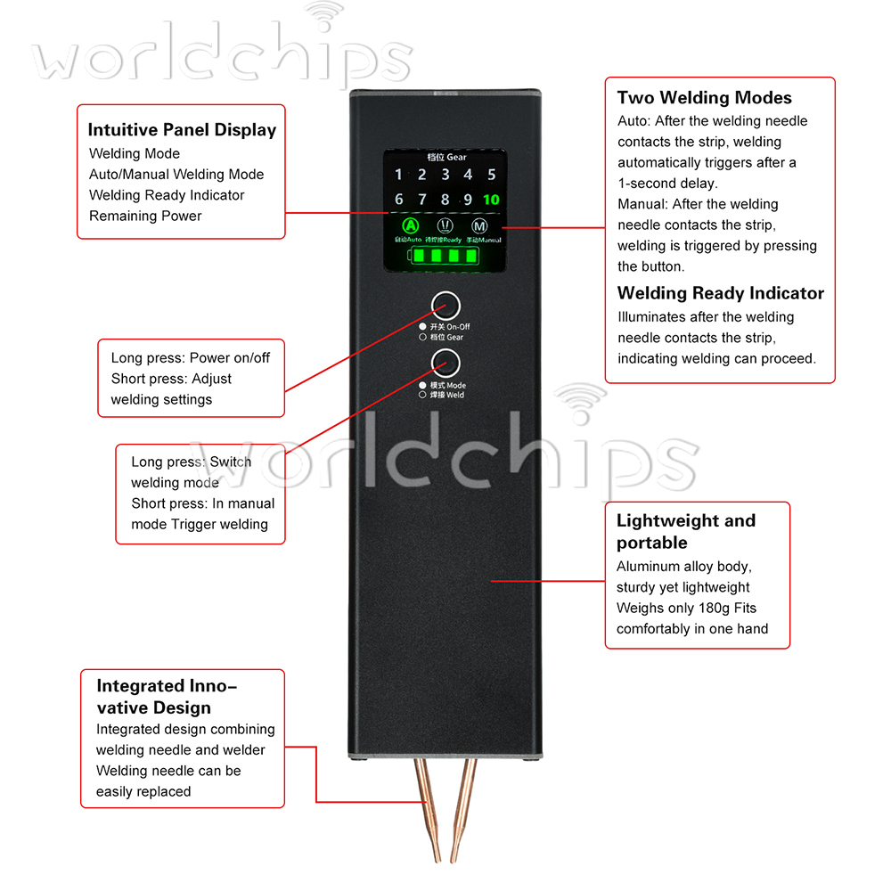 1. 10-Step Spot Welding: Supports 10 adjustable levels for precise control of spot welding output