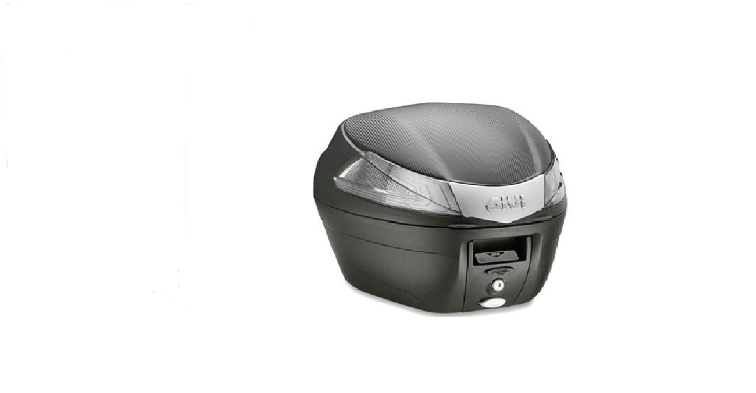 B34 TOP BOX MONOLOCK DE 34 LITROS NEGRO CON REFLECTORES AHUMADOS. INCLUYE PLACA Y KIT UNIVERSAL. Diseñado para un uso urbano a bordo de scooters o motos de pequeña cilindrada, este baúl MONOLOCK® ofrece un espacio interno de 34 litros e incluye de serie la placa y el kit universal de fijación al vehículo. Se caracteriza por una forma ligeramente vertical y alargada que limita el volumen lateral sin sacrificar la capacidad de carga, pudiendo acomodar un casco integral/modular además de objetos cotidianos. Detalles estéticos interesantes son el acabado realizado con un patrón Carbon Look y el par de grandes REFLECTORES laterales rojos, separados por el logo GIVI en relieve, sobre una placa pintada con acabado efecto acero. El equipamiento técnico de serie incluye un fondo de gran rigidez, juntas de estanqueidad y el uso de una única llave para abrir la tapa y liberar el top case. Gracias al sistema MICRO 3 la tapa se cierra simplemente presionando. Capacidad: 1 casco modular Peso de la caja: 3KG Volumen de la caja: 34LT Dimensiones: 240x455x425 mm