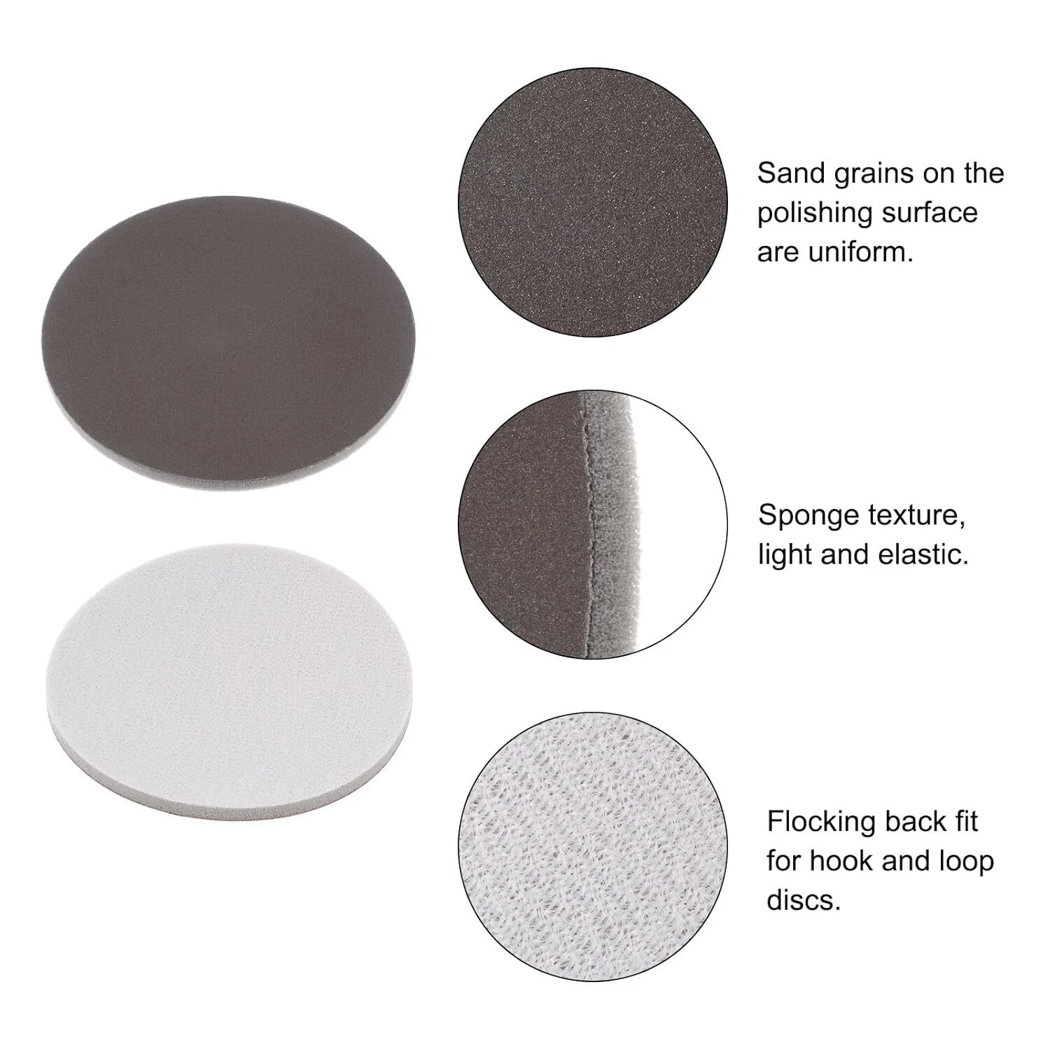 Multi-surface use: Ideal for smoothing wood, metal, paint, and drywall. Flexible sponge design: Contours to curved or uneven surfaces. Hook and loop backing: Ensures secure attachment and easy disc replacement. 50-piece set: Offers lasting value for frequent projects. Advanced Flexible Construction: Sponge core with integrated cloth backing adapts seamlessly to surface contours. Uniform Abrasive Distribution: Consistent grain placement ensures even finishing results across entire surface. Secure Attachment System: Interlocking grip surface maintains stable positioning during operation. Reusable Design: Washable construction allows multiple uses and extends service life.