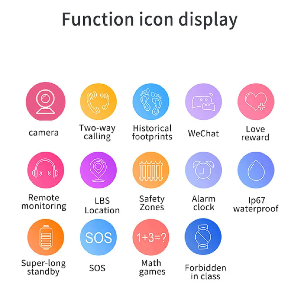 6. elektronischer Zaun, bewacht immer die Sicherheit der Kinder Legen Sie den Aktivitätsbereich des Kindes fest, wenn das Kind den festgelegten Bereich verlässt, erhält das Elternhandy eine Alarmmeldung. Verhinderung von Verlust, Verhinderung des Zugangs zu gefährlichen Bereichen, Verhinderung des Verirrens