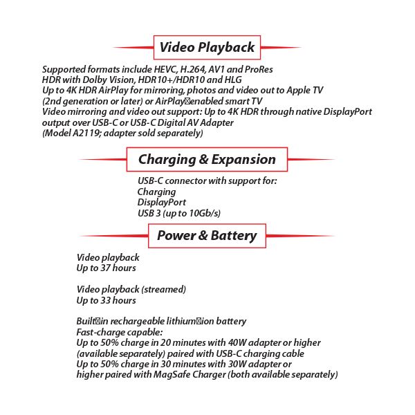 - Up to 37 hours video playback Footnote