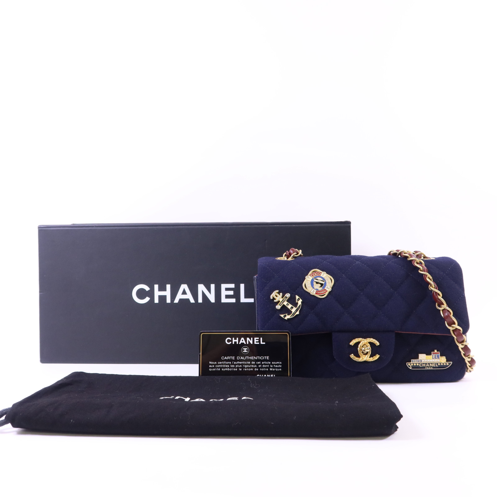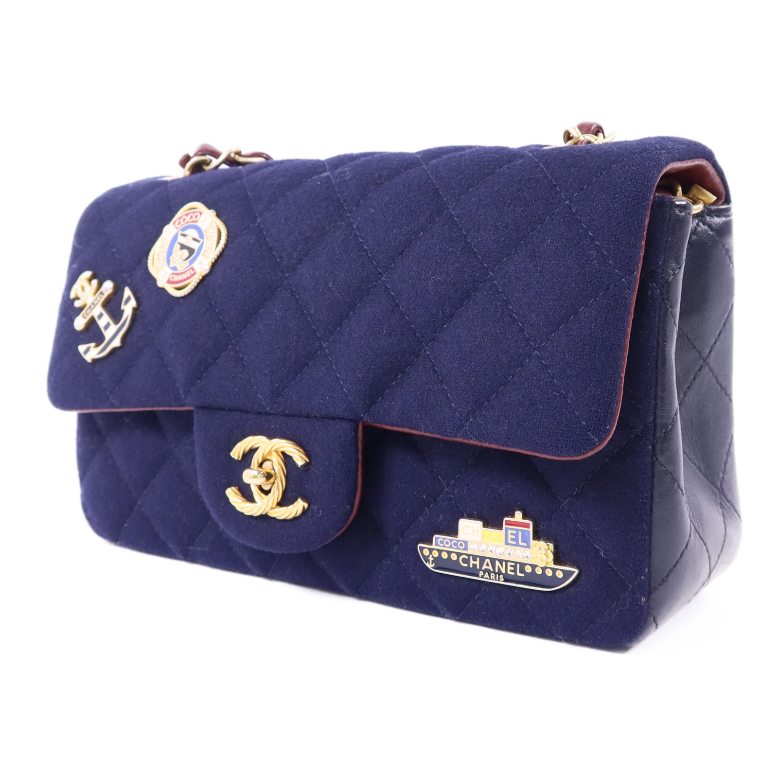 | Item Name | CHANEL CC GHW Paris Hamburg Charms Mini Flap Bag Chain Shoulder Bag Wool Navy |