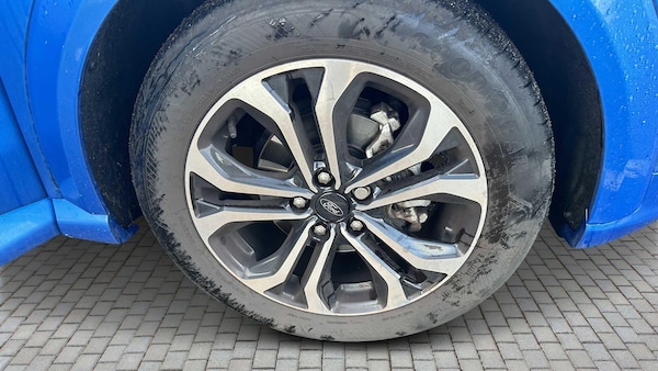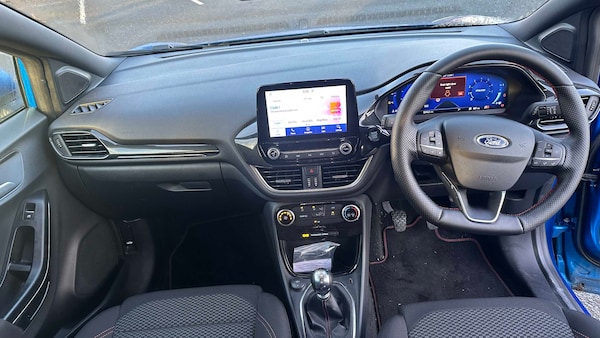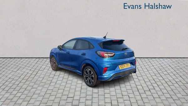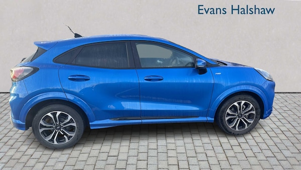 Privacy Glass, Cloth - Black with Red Stitching, Desert Island Blue, 17in Alloy Wheels - 5x2 Spoke - Black Machined Finish, Acoustic Laminated Windscreen, Active Grille Shutter, Ecoboost Hybrid Tailgate Badge, Electric Windows - Front and Rear, Front Bumper - Unique ST-Line Sport Design - Body Colour, Large Rear Spoiler - Body Colour with Centre High Mounted Stop Light, Locking Wheel Nuts, Lower Bodyside Moulding - Body Colour, Power-Foldable Heated Door Mirrors with Puddle Lamps, Puma Badge, Quickclear Heated Windscreen, Rear Bumper Body Colour - Diffuser, ST-Line Badge, ST-Line Body Styling Kit, Tailgate - Manual, Tyre Inflation Kit, ABS - Anti-lock Braking System, ESC - Electronic Stability Control and Hill Start Assist, Emergency Brake Warning - Automatic Hazard Warning Lights, First Aid Kit Strap, Lane Keeping Aid with Lane Departure Warning, Post Collision Braking, Remote Central-Double Locking, Thatcham Alarm, Traction Control and Emergency Braking Assistance, Automatic Headlights with Rain-Sensing Wipers and Auto High Beam, Cruise Control with Intelligent Speed Assist, Ford SYNC 3 Navigation, Front Fog Lights, Intelligent Speed Assistance, LED rear lights, Power Steering, Pre-Collision Assist with Autonomous Emergency Braking and Pedestrian-Cyclist Detection, Projector Headlamps with LED Daytime Running Lights, Rear Parking Sensors, Selectable Driving Modes - Normal - Eco - Sport - Slippery and Trail, Speed Limiter, Sports Suspension, Trip-Fuel Computer, Tyre Pressure Monitoring System - TPMS, Automatic Dimming Rear View Mirror, Centre Console - Premium with Openable Stowage Area with USB Connectivity - 2 Cupholders and 12v Power Point, Courtesy Lights - Ambient LED Courtesy Lighting - Single Colour, Drivers Manual 4-Way Seat Adjustment with Manual Lumbar Adjust, Ford MegaBox Extended Bootspace, Ford Power Starter Button, Front Floor Mats, Front Seats - Sports Style, Full Digital 12.3in Instrument Cluster, Gear Knob - Aluminium, Handbrake - Black Sensico Trimmed with Stitching, Headliner - Deluxe, Instrument Panel - High Level, Manual Air Conditioning, Passengers Seat - 2-Way, Rear Seats - 2-Way Head Restraint Up-Down, Rear Seats - Second Row 60-40 Folding Seats, Restrain Device Pack, ST-Line Flat-Bottomed Leather Steering Wheel with Unique Red Stitching, Soft-feel Gearshift Boot with Red Stitching