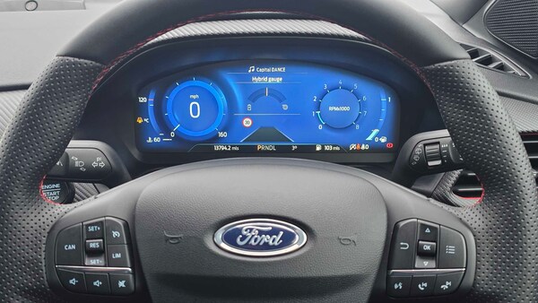 18in Alloy Wheels - 5-Spoke - Matt Black Machined Finish, Acoustic Laminated Windscreen, Active Grille Shutter, Ecoboost Hybrid Tailgate Badge, Electric Windows - Front and Rear, Front Bumper - Unique ST-Line Sport Design - Body Colour, Large Rear Spoiler - Body Colour with Centre High Mounted Stop Light, Locking Wheel Nuts, Lower Bodyside Moulding - Body Colour, Power-Foldable Heated Door Mirrors with Puddle Lamps, Privacy Glass, Puma Badge, Quickclear Heated Windscreen, Rear Bumper Body Colour - Diffuser, ST-Line Badge, ST-Line Body Styling Kit, Tailgate - Manual, Tyre Inflation Kit, ABS - Anti-lock Braking System, ESC - Electronic Stability Control and Hill Start Assist, Emergency Brake Warning - Automatic Hazard Warning Lights, First Aid Kit Strap, Lane Keeping Aid with Lane Departure Warning, Post Collision Braking, Remote Central-Double Locking, Thatcham Alarm, Traction Control and Emergency Braking Assistance, Automatic Headlights with Rain-Sensing Wipers and Auto High Beam, B&O Premium Audio System and Ford SYNC 3 Navigation, Cruise Control with Intelligent Speed Assist, Front Fog Lights, Intelligent Speed Assistance, LED rear lights, Power Steering, Pre-Collision Assist with Autonomous Emergency Braking and Pedestrian-Cyclist Detection, Projector Headlamps with LED Daytime Running Lights, Rear Parking Sensors, Selectable Driving Modes - Normal - Eco - Sport - Slippery and Trail, Speed Limiter, Sports Suspension, Trip-Fuel Computer, Tyre Pressure Monitoring System - TPMS, Wireless Charging Pad with Electronic Air Temperature Control EATC, Automatic Dimming Rear View Mirror, Carbon-Look Interior Deco Spears, Centre Console - Premium with Openable Stowage Area with USB Connectivity - 2 Cupholders and 12v Power Point, Courtesy Lights - Ambient LED Courtesy Lighting - Single Colour, Drivers Manual 4-Way Seat Adjustment with Manual Lumbar Adjust, Electronic Air Temperature Control - EATC, Ford MegaBox Extended Bootspace, Ford Power Starter Button, Front Floor Mats, Front Seats - Sports Style, Full Digital 12.3in Instrument Cluster, Handbrake - Black Sensico Trimmed with Stitching, Headliner - Deluxe, Instrument Panel - High Level, Passenger 4-Way Seat with Lumbar Adjustment, Rear Seats - 2-Way Head Restraint Up-Down, Rear Seats - Second Row 60-40 Folding Seats, Restrain Device Pack, ST-Line Flat-Bottomed Leather Steering Wheel with Unique Red Stitching, Soft-feel Gearshift Boot with Red Stitching, Partial Premium Sensico - Black with Red Stitching,