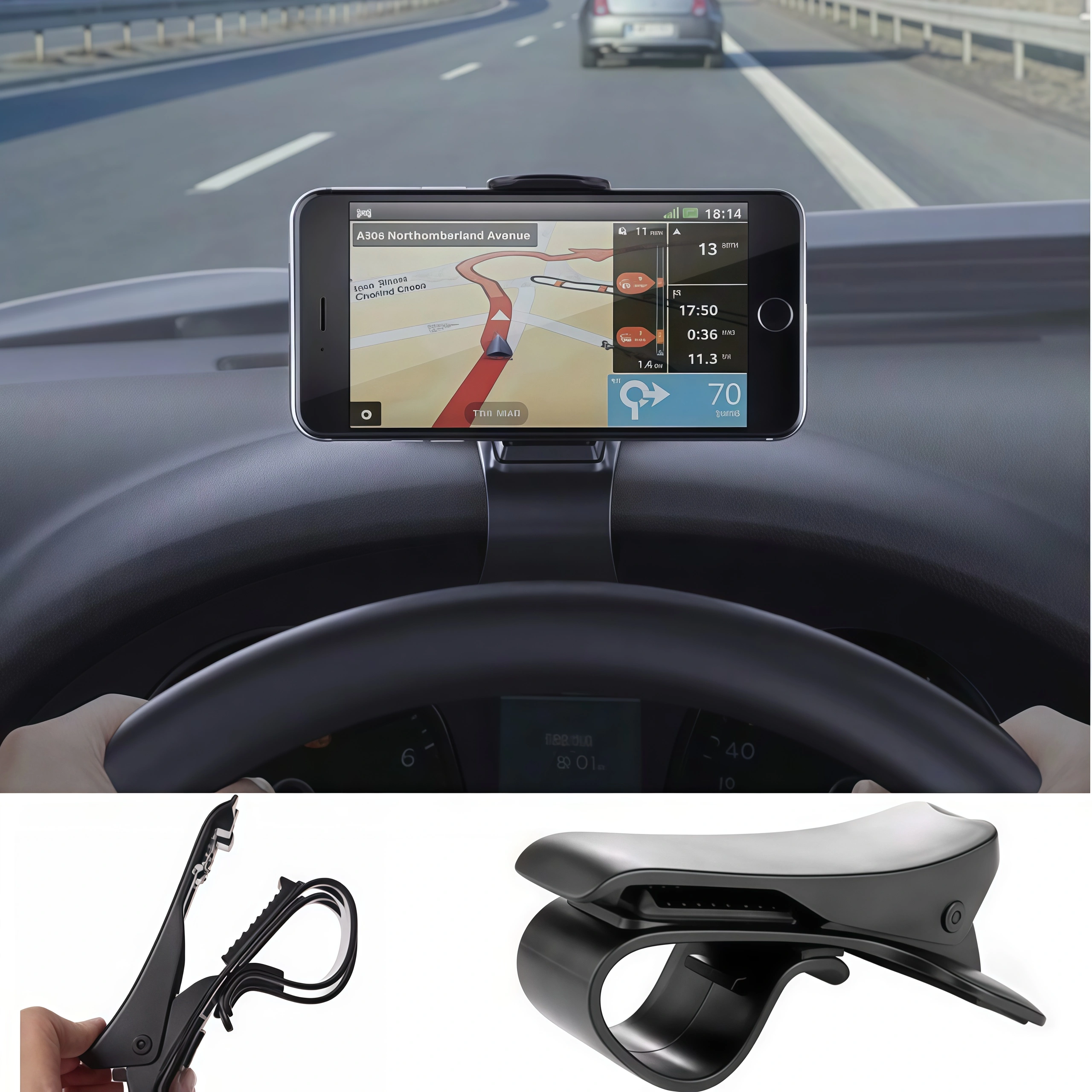 Dashboard Clip Mount: The dashboard phone holder is mounted in line with the road, no need to look down to the car screen, it could ensure you have a boundless view while using GPS or talking, safe driving in the eye line.