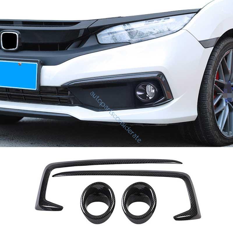 For Honda Civic 2019-2020 2021 ABS Carbon Fiber Front Fog Light Lamp Ring Strip