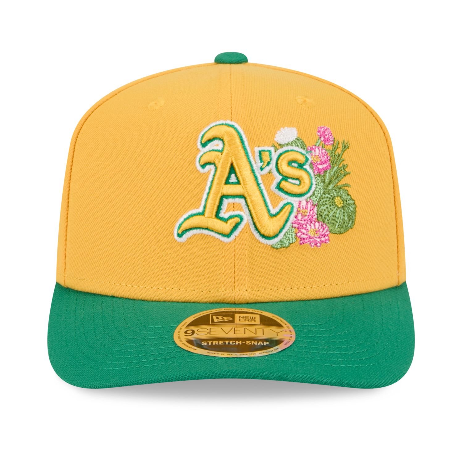 Die neuartige 9Seventy Stretch-Fit Cap hat eine feste Krone, leicht gebogenen Schirm und Snapback-Verschluss.