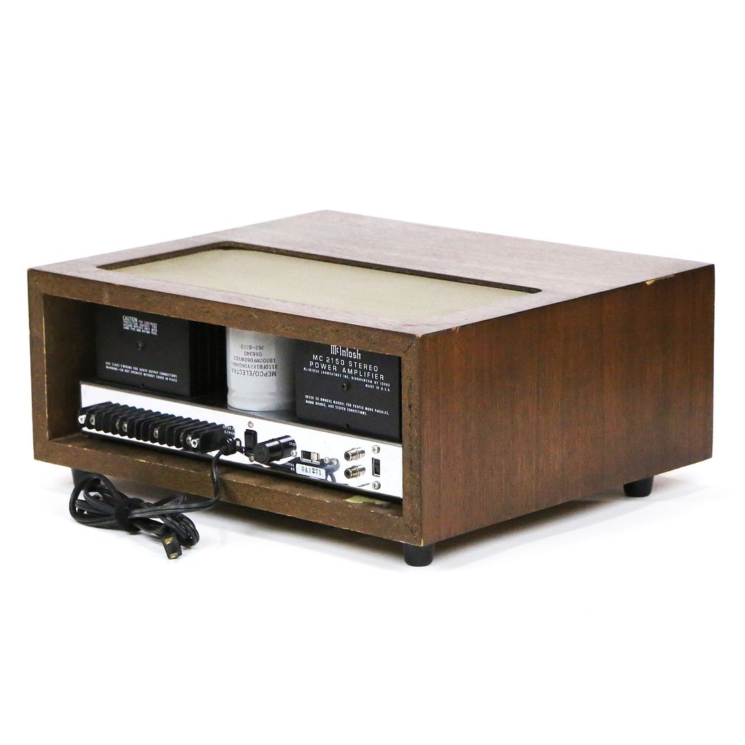 For your consideration is this vintage 1982 McIntosh MC 2150 Stereo Power Amplifier unit with matching original L12 wood cabinet.