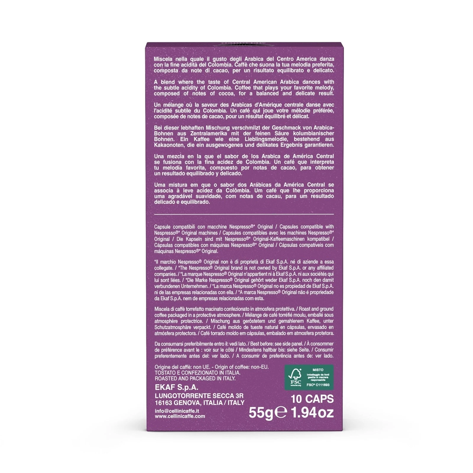 ☕️ PACKAGING ECOLOGICO: Cellini ha un'attenzione per l'ambiente utilizzando cartoncino in pura cellulosa FSC. le capsule in alluminio, separato dal caffè dopo l'uso, è un materiale riciclabile potenzialmente all'infinito.