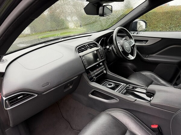 ONE OWNER ++ FULL SERVICE HISTORY ++ 2 KEYS ++ ULEZ COMPLIANT ++ FRESH SERVICE INCLUDED ++ NEW 12 MONTH MOT INCLUDED ++ NATIONWIDE DELIVERY AVAILABLE ++ UPTO 36 MONTHS WARRANTY AVAILABLE. 5in Display with Instrument Panel, Bluetooth Audio Streaming, Bluetooth Telephone Connectivity, Digital Audio Broadcast - DAB - Radio, Dynamic Volume Control, InControl Apps, Jaguar Sound System, Navigation System, Power Sockets, Remote Premium for Warranty Period, Single View 8in Touchscreen for Touch, Wi-Fi Hotspot, Brake Pad Wear Indicator, Cruise Control with Speed Limiter, ECO Driving Style Assistant, Front Parking Aid, JaguarDrive Control, Lane Departure Warning, Outside Temperature Gauge, Rear Parking Aid, Start Up Sequence with Movement - Dials and Lighting, Traffic Sign Recognition with Intelligent Speed Limiter, Trip Computer, Tyre Pressure Monitoring System, 19in Alloy Wheels - 5 Split-Spoke Style 5038 - Grey Diamond Turned, 20d AWD Badge, Door Mirrors - Body Coloured, Electric Windows - Front and Rear with One-Touch Open-Close and Anti-Trap, Electrically Adjustable Heated Door Mirrors, Gloss Black Roof Rails, Gloss Black Side Window Surround, Grained Black Radiator Grille with Satin Chrome Surround, Green Tinted Glass, Heated Rear Window, Jaguar Script and Leaper, Jaguar Tyre Repair System, Rear Fog Lights, Rear F-Pace Badge, R-Sport Body Kit, Satin Chrome Side Vents with R-Sport Badge, Single Sided Twin Tailpipes with 75mm Finishers, Approach Illumination, Front Fog Lights, LED Tail Lights, Xenon Headlights with LED Signature, 2-Zone Climate Control, 3-Flash Lane Change Indicators, 40-20-40 Split Fold Rear Seat, 8-Way Manual Front Seats, Ambient Interior Lighting, Auto-Dimming Interior Rear View Mirror, Bright Metal Pedals, Carpet Mats, Centre Console - Side Stowage, Centre Console - Storage Surround Finishers - Satin Chrome, Centre Console with Armrest, Door Trim - Luxtec, Ebony Morzine Headlining, Etched Aluminium Trim Finisher, Front Headrests, Heated Front Seats, Hook in Loadspace, Interior Front Door Handles with Separate Locking Switches, Loadbay - Luggage Tie Downs, Lockable Glovebox with Jaguar Script Finisher, Luxtec Wrapped Instrument Panel Topper, Manually Adjustable Steering Column, Metal Treadplates with R-Sport Branding, Overhead Lighting Console, Passive Front Head Restraints, Power Boot Lid, Power Tailgate, Protect for Warranty Period, Push Button Start, Rain Sensing Windscreen Wipers, Rear Air Vents, Rear Armrest with Twin Cupholders, Reversible Boot Floor - Carpet-Rubber, Satin Chrome Touchscreen Surround, Seats - Sports, Second Row Centre Headrest, Steering Wheel - Multi-Function, Steering Wheel - R Sport Branded Soft Grain Leather, Steering Wheel - Satin Chrome Paddles, Twin Front Cupholders with Cover, Valet Mode, Variable Intermittent Wipers, EPAS - Electric Power Assisted Steering, Speed Proportional Steering, Torque Vectoring, 325mm Front Brakes, ABS - Anti-locking Braking System, AEB - Autonomous Emergency Braking, Airbags - Front Side, Airbags - Full Length Side Window Curtain, ASPC - All Surface Progress Control, Dynamic Stability Control and Traction Control, EBA - Emergency Brake Assist, EPB - Electronic Parking Brake - Drive Away Release, Front Airbags with Passenger Seat Occupant Detector, Hazard Lights Under Heavy Braking, Hill Launch Assist, ISOFIX Rear, Perimeter Alarm, Power Operated Child Locks, Remote Control Central Locking, Seat Belt Reminder, Trailer Stability Assist, Vehicle Immobiliser