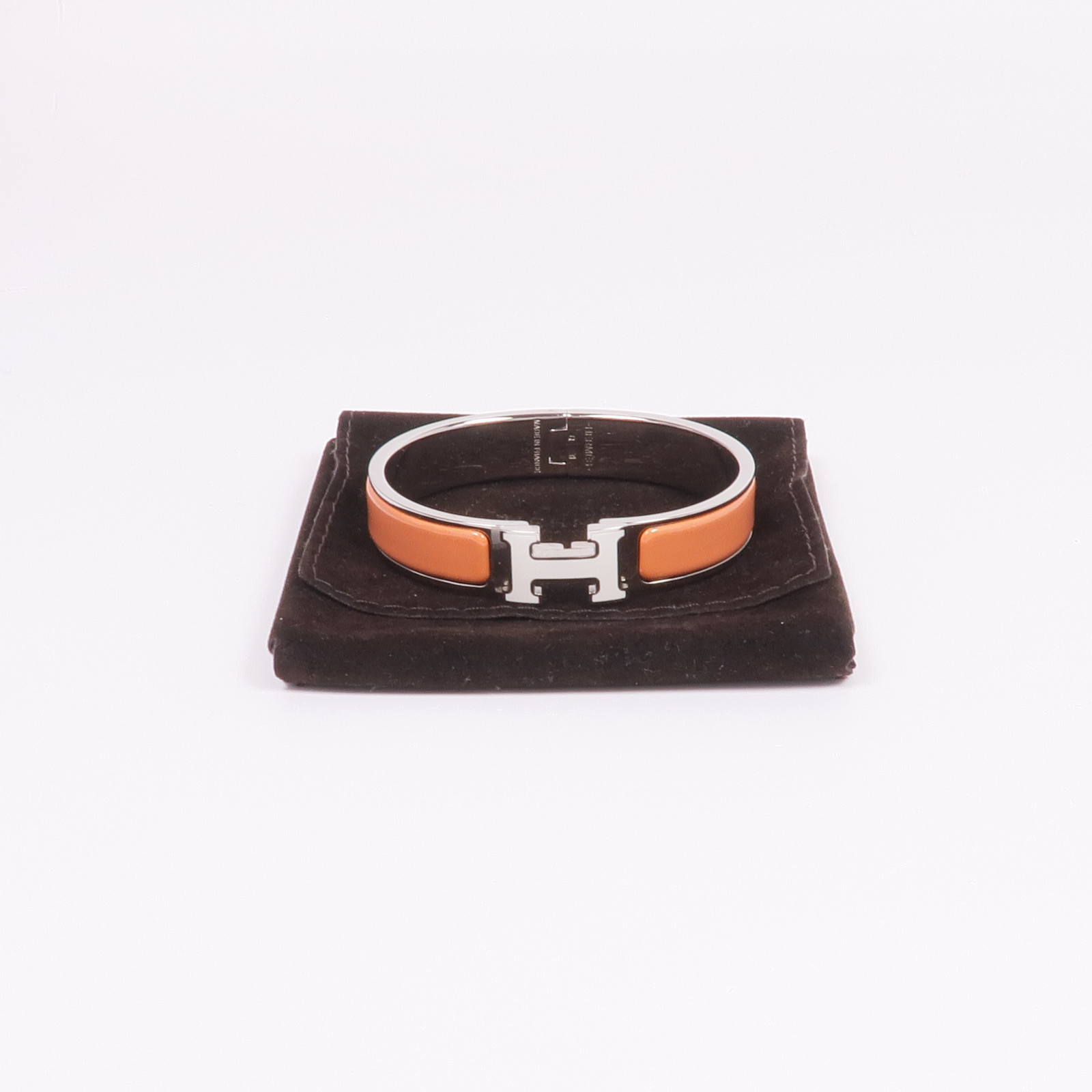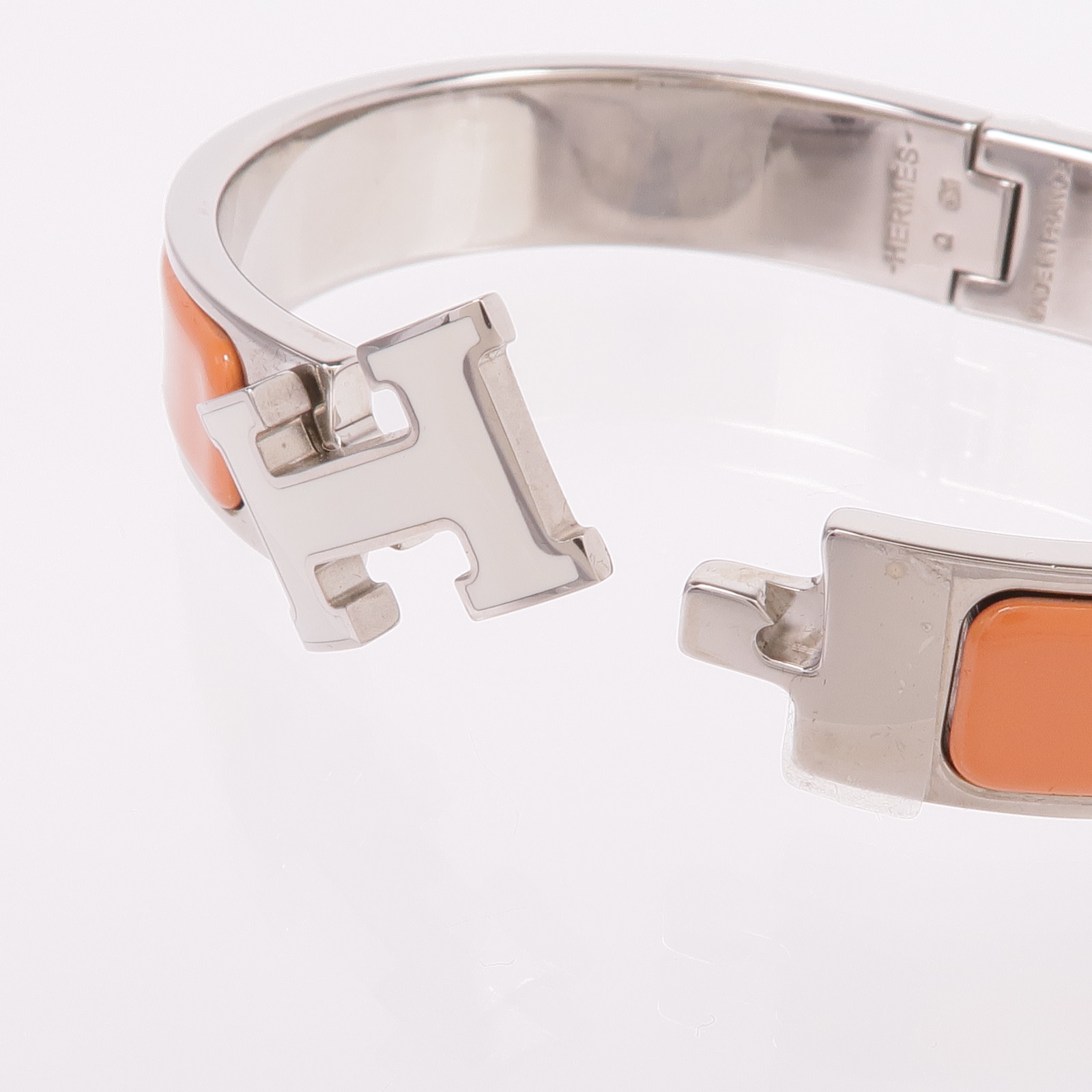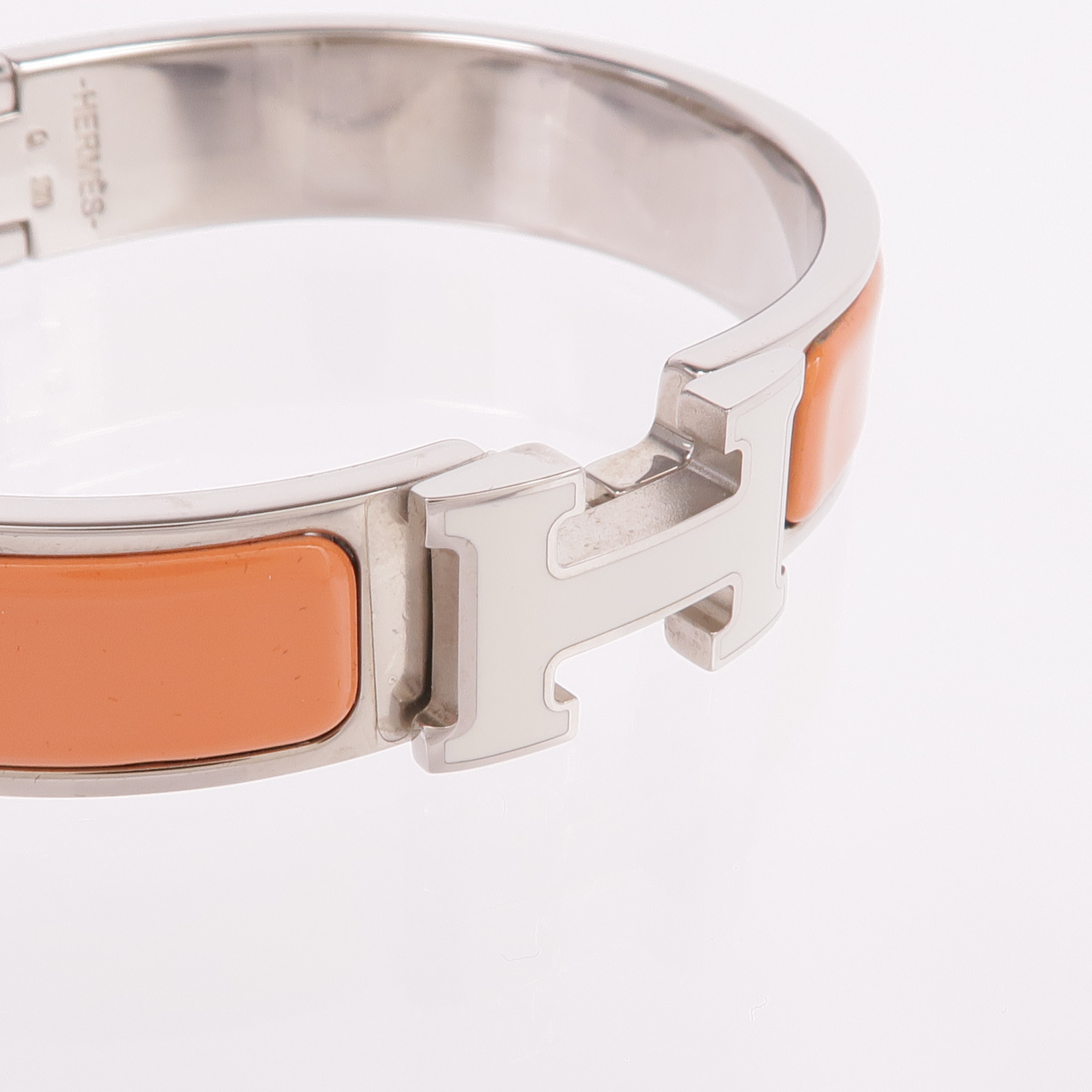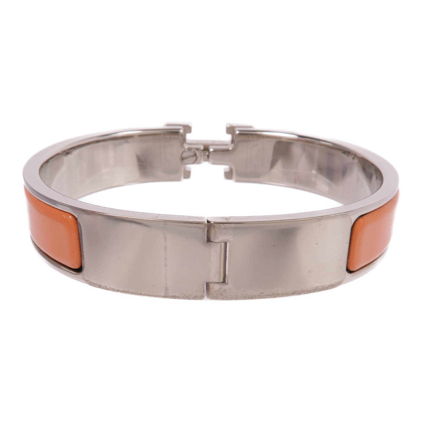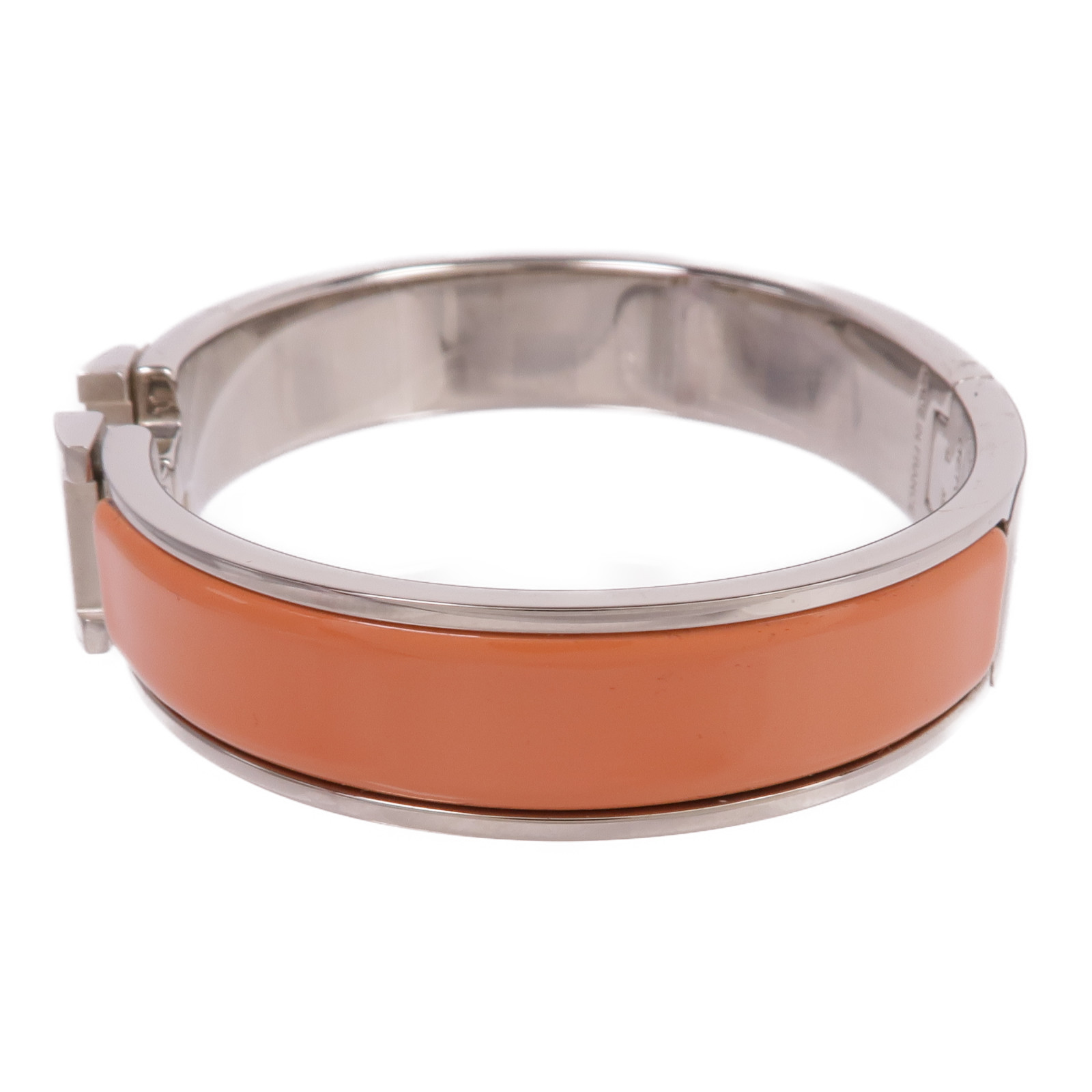 | Item Name | HERMES Clic H Bracelet Enamel Metal Silver Orange White |