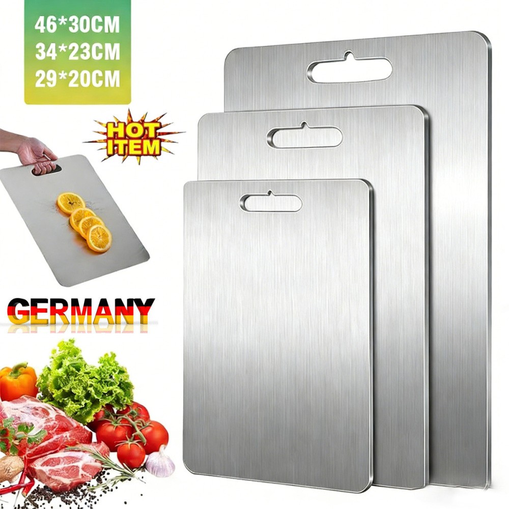 Unsere Schneidebretter aus lebensmittelechtem Edelstahl 304 sind die sicherste Wahl für Ihre Küche. Sie nehmen keine Flüssigkeiten oder Verunreinigungen auf, wie Holz oder Bambus.