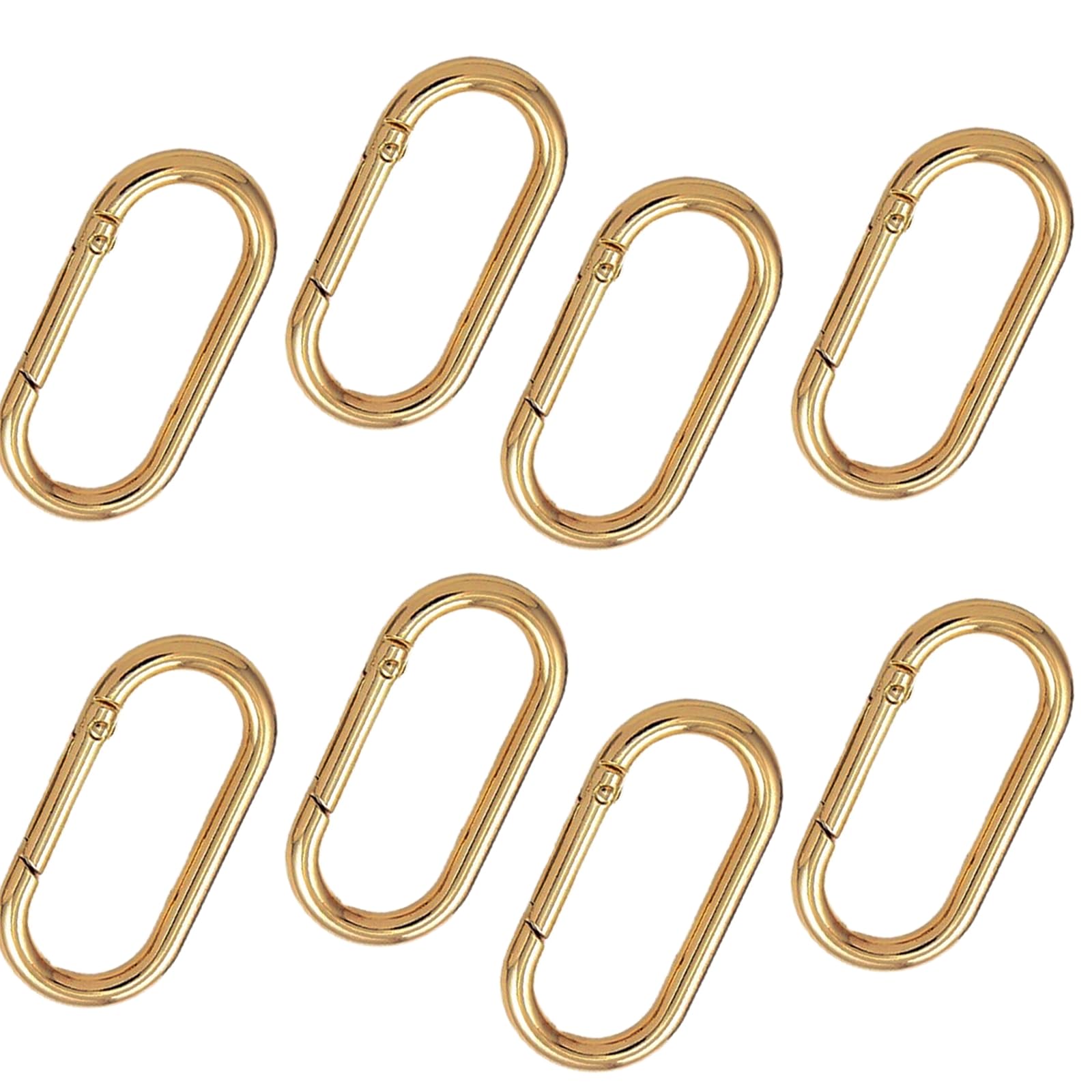 Introducing our premium set of 8 Oval Spring Ring Clips, engineered for versatility and durability. Each clip measures 1.97 x 0.94 inches, making them the ideal accessory for a multitude of uses. Crafted from high-quality alloy, these gold-colored key ring clips offer both strength and elegance, ensuring that your belongings are securely fastened while adding a touch of style.