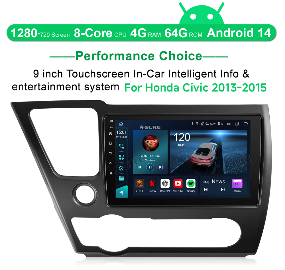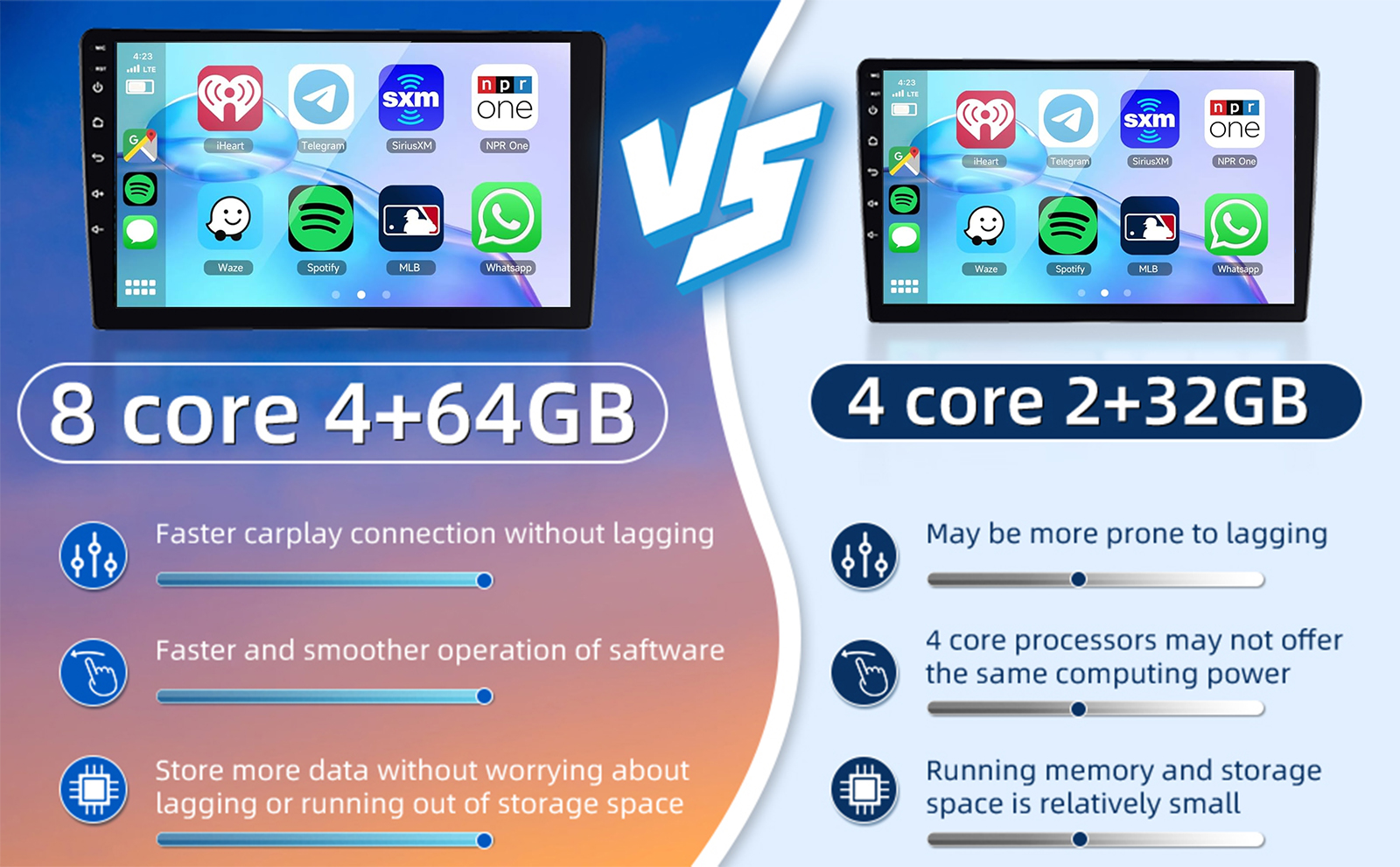 9-inch | 8-Core 4G+64G | Android 14 | Wireless CarPlay & Android Auto | GPS | 4G LTE | Bluetooth | WiFi | FM RDS | Plug & Play
